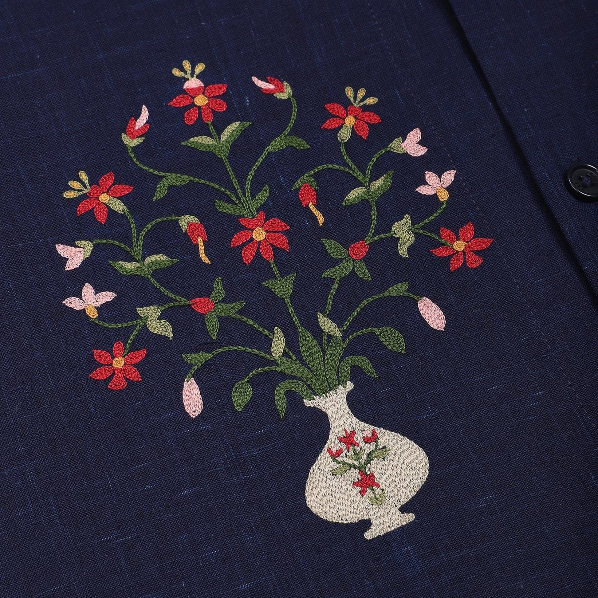 RONENEMB13 RONEN EMB SS SHIRT - INDIGO