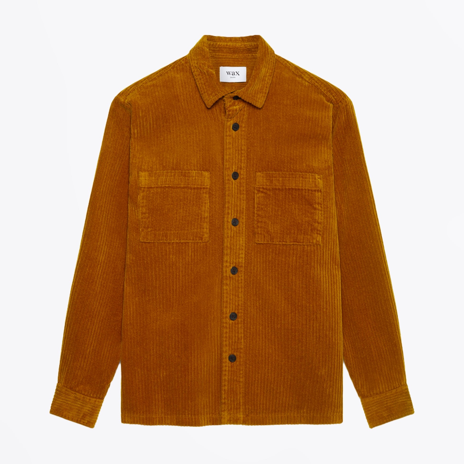 Wax London was founded with a dedication to create premium menswear with sustainability at its core. The brand aims to bring the manufacturing of British outerwear back to the UK. Wax London sources the most sustainably produced fabrics, using natural dyeing techniques, manufacturing closer to home, and donating profits to charity. Update your new season wardrobe with bold colour and interesting texture. This shirt features a cotton corduroy material in a fun caramel colour with a collared neckline, with a black button-down fastening, two breast patch pockets and a regular fit. Wear this shirt styled open over a t-shirt and with some designer trainers.