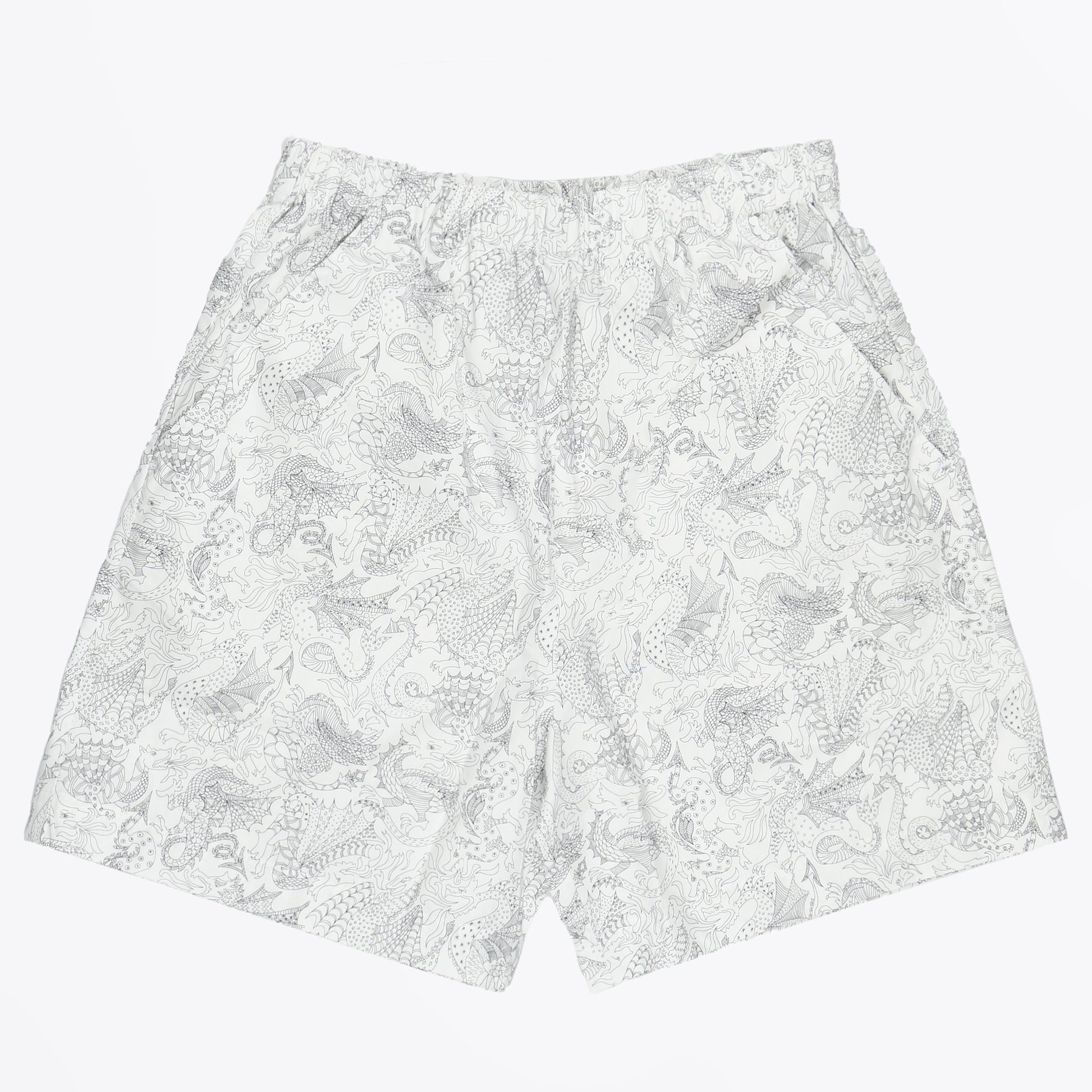 A.P.C. incorporates a contemporary Parisian sophistication offering classical tailoring, premium textiles and refined wardrobe essentials reflecting an unfussy elegance. A great way to add a touch of fun to your wardrobe staples, these shorts is crafted in collaboration with Liberty London, and features an illustrated dragon print, with an elasticated waistband, a drawstring waist, side pockets, and a back pocket. Wear these shorts with a button-down shirt.