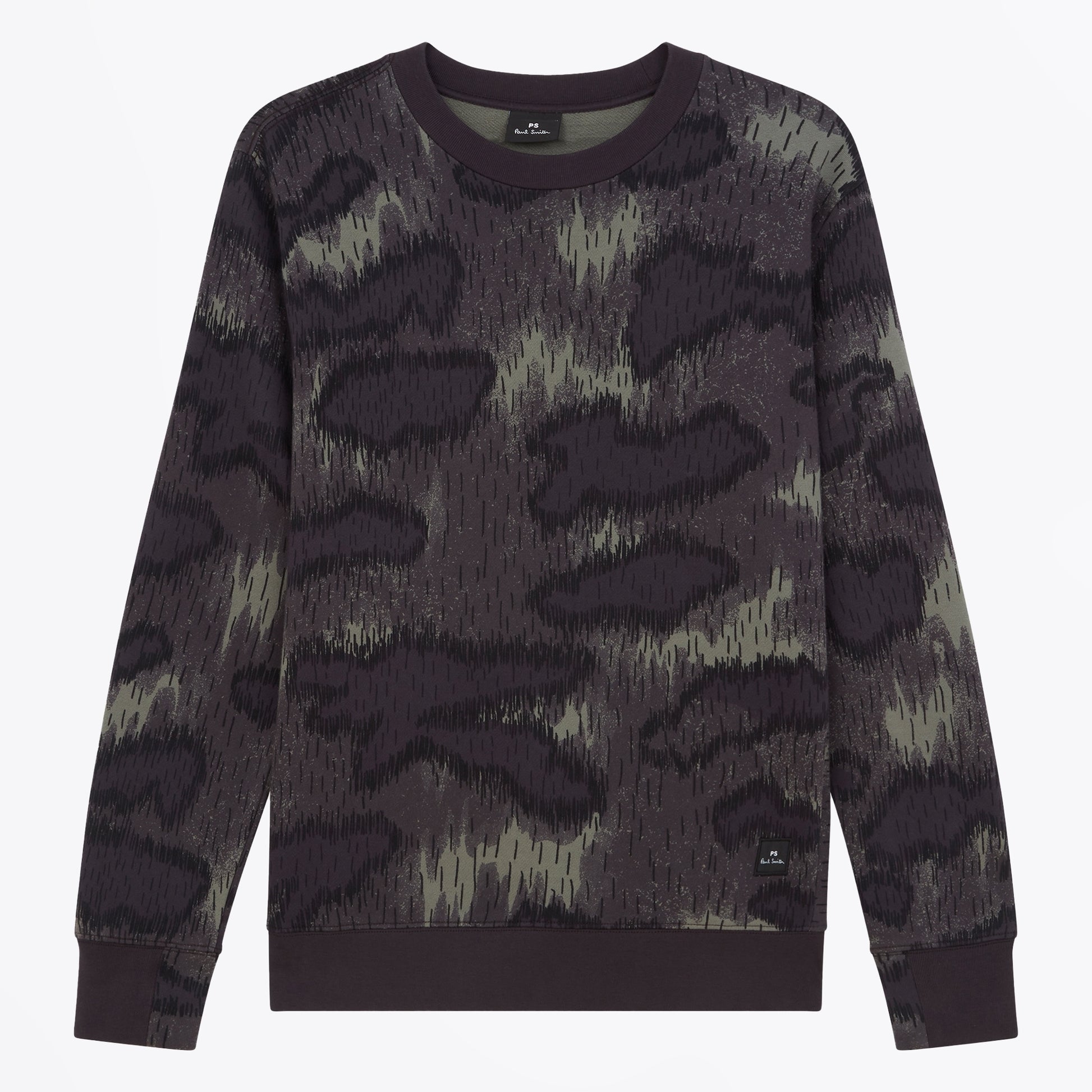 Paul Smith is a distinguished British designer who is renowned for his creative aesthetic, which combines tradition and modernity. Add some designer luxury to your new season wardrobe. Crafted in an organic cotton material, this sweatshirt features a printed camo patter, with a ribbed crew neckline, a branded patch appliqued by the hem, and ribbed cuffs and hem. Wear this sweatshirt with a pair Universal Works trousers, and your favourite trainers.