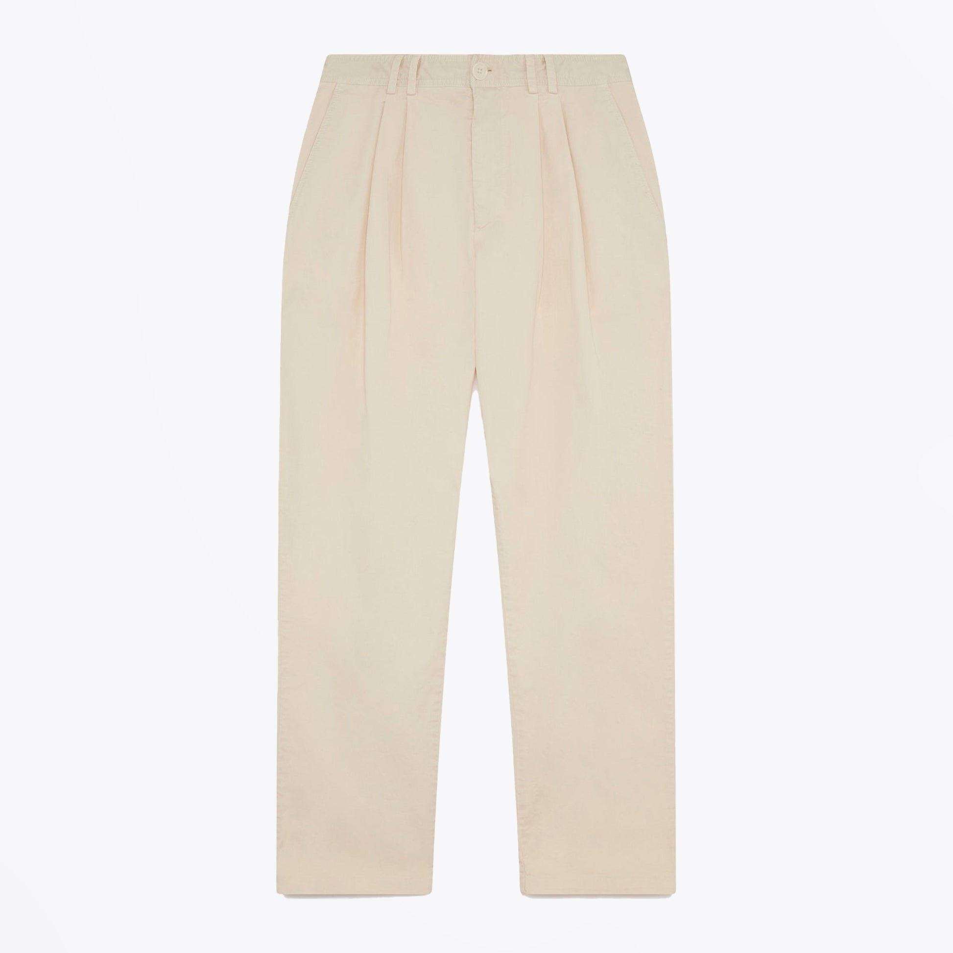 Wax London was founded with a dedication to create premium menswear with sustainability at its core. The brand aims to bring the manufacturing of British outerwear back to the UK. Wax London sources the most sustainably produced fabrics, using natural dyeing techniques, manufacturing closer to home, and donating profits to charity. Add some contemporary design that is easily styled up or down with this Wax London option. These sand-coloured trousers feature a double pleated front, with a chunky button, and zip fly and side pockets. Wear these trousers with a pair of Paul Smith trainers, and an overshirt.