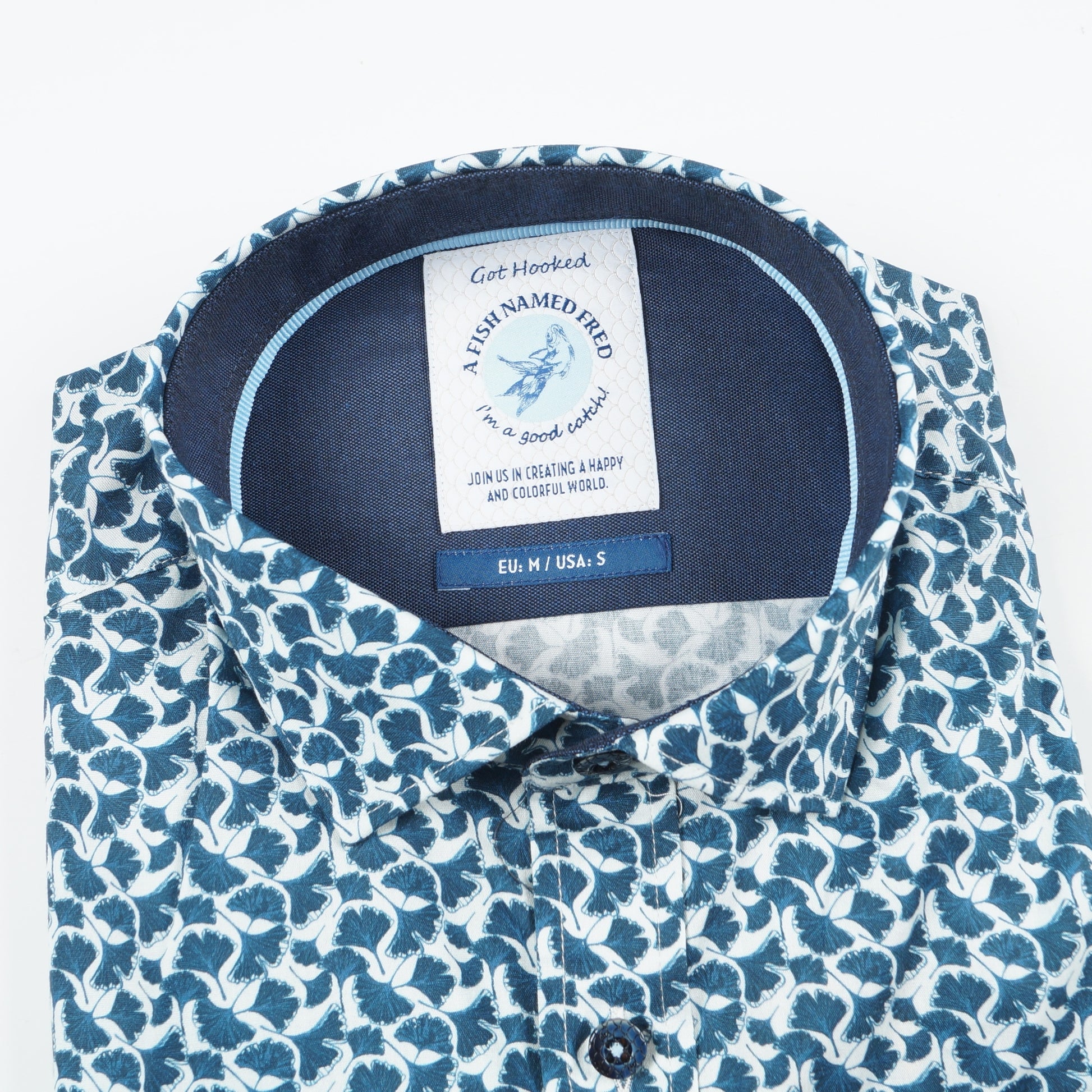 A Fish Named Fred is a fresh brand that designs colourful shirts with luxurious materials and refined details to help a modern man stand out in the crowd. Add a quirky print to your new season shirts with this fun option. This navy shirt features an artistic design, a button-up fastening, a collared neckline, a branded embroidery logo the left cuff in yellow stitching, and buttoned cuffs. Wear this shirt to add some variety into your suits this season.