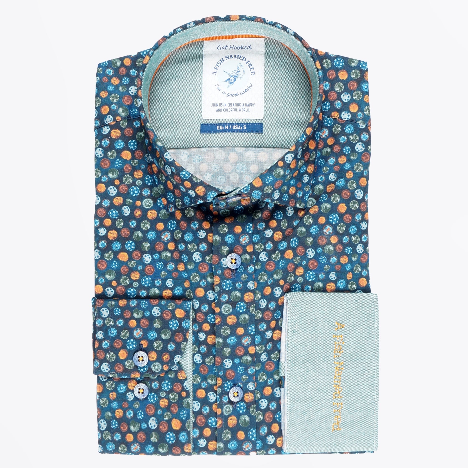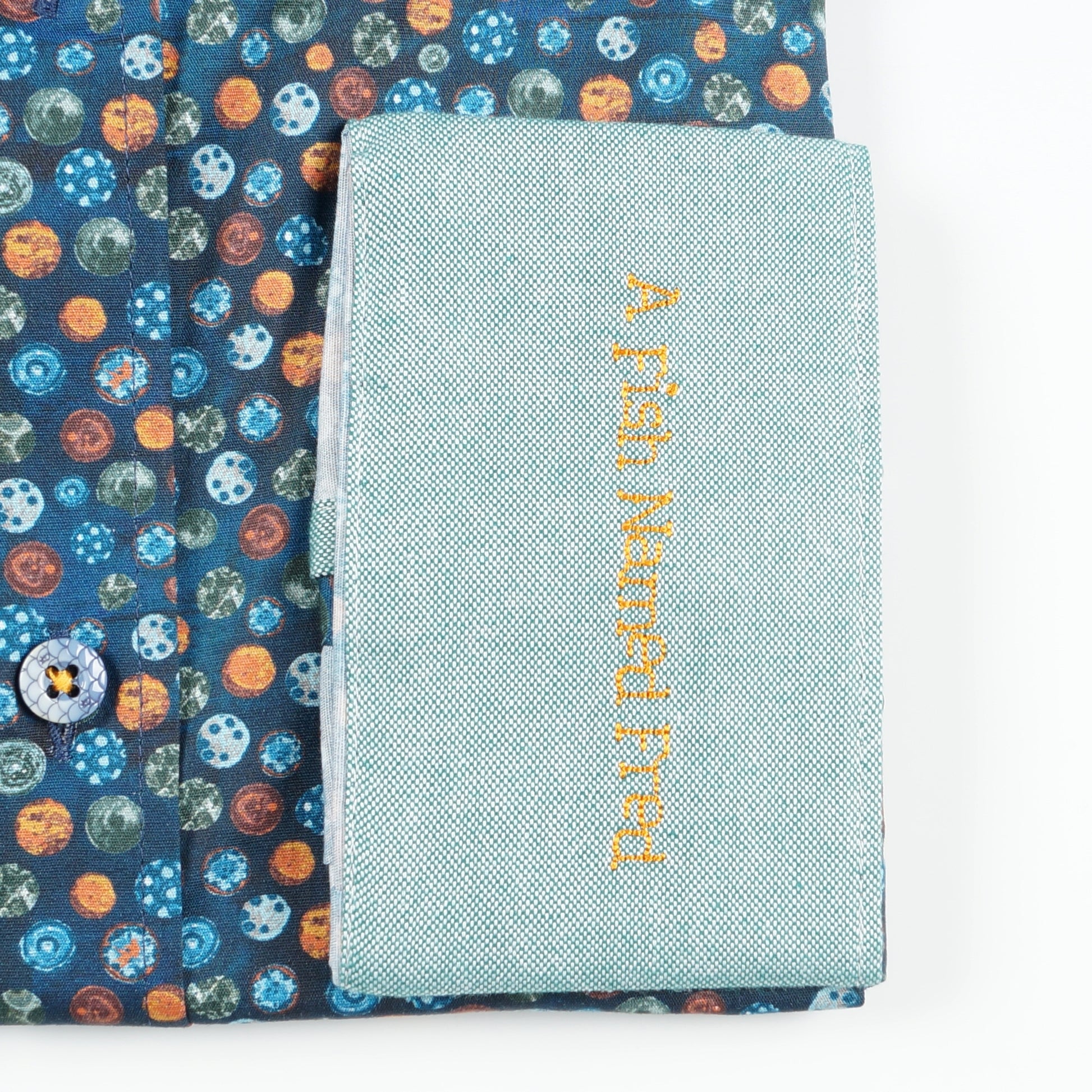 A Fish Named Fred is a fresh brand that designs colourful shirts with luxurious materials and refined details to help a modern man stand out in the crowd. Add a quirky print to your new season shirts with this fun option. This navy shirt features a multi-coloured dot design, a button-up fastening, a collared neckline, a branded embroidery logo the left cuff in a tan stitching, and buttoned cuffs. Wear this shirt to add some variety into your suits this season.