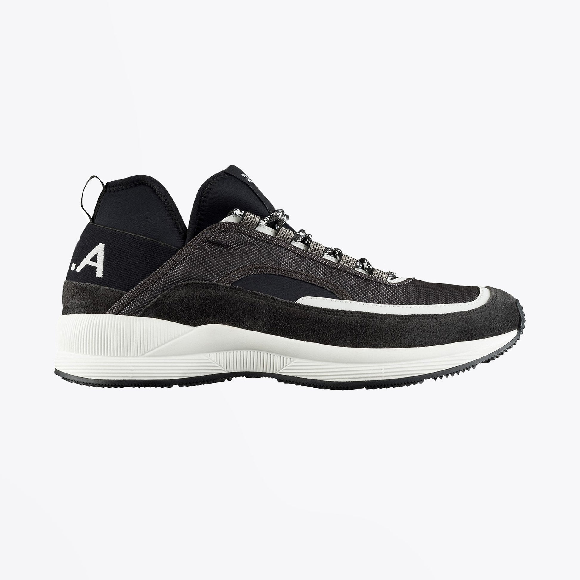 Introducing our newest French label, A.P.C. to Mr & Mrs Stitch. The brand incorporates a contemporary Parisian sophistication offering classical tailoring, premium textiles and refined wardrobe essentials reflecting an unfussy elegance. This classic stylish trainer is crafted from technical material with five-hole braided lace up closure and contrasting A.P.C. logo on the tongue. Features include padded ankle collar, padded inset at heel with reinforced insole and grooved sole designed exclusively for A.P.C.