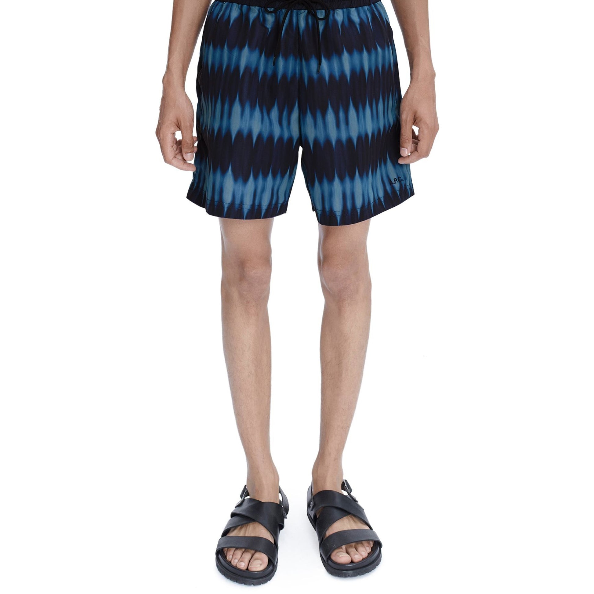 A.P.C. incorporates a contemporary Parisian sophistication offering classical tailoring, premium textiles and refined wardrobe essentials reflecting an unfussy elegance. A great way to add a fun print to your wardrobe, this shorts feature a bled dye design in navy, with an elasticated waistband, a drawstring, side pockets, a back pocket, and an embroidered logo on the hem. Wear these swimsuit on your next holiday.