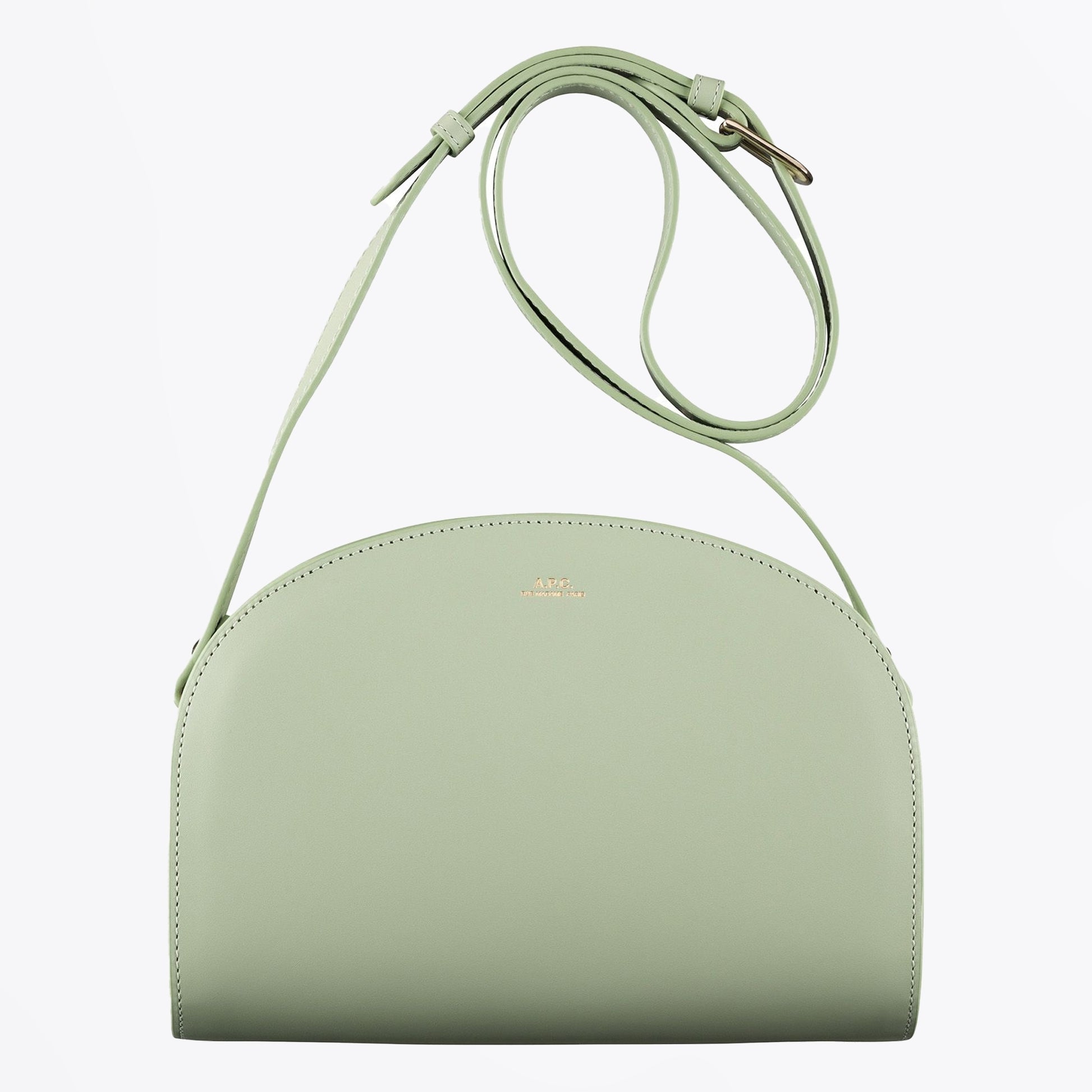 A.P.C. incorporates a contemporary Parisian sophistication offering classical tailoring, premium textiles and refined wardrobe essentials reflecting an unfussy elegance. Giving classical elegance with contemporary styling, this half-moon bag is crafted in a sage green leather, with the A.P.C. logo embossed on the front in gold lettering. This bag has a zip closure on top in gold hardware, with leather pull tabs, and an adjustable crossbody strap. Wear this bag as part of your everyday outfit rotation.