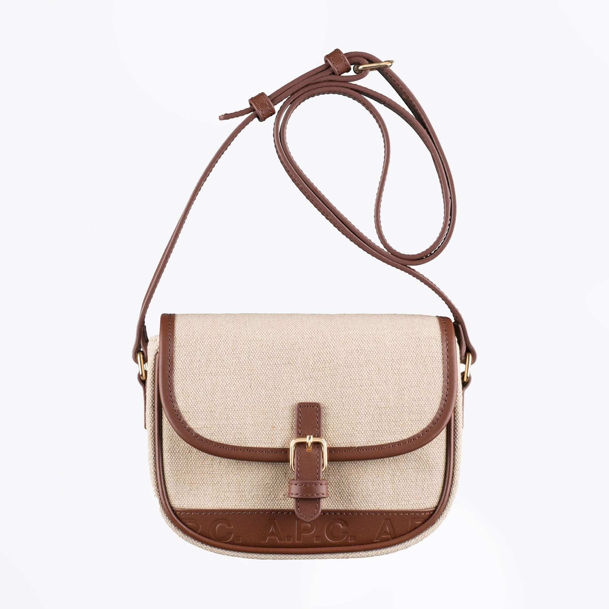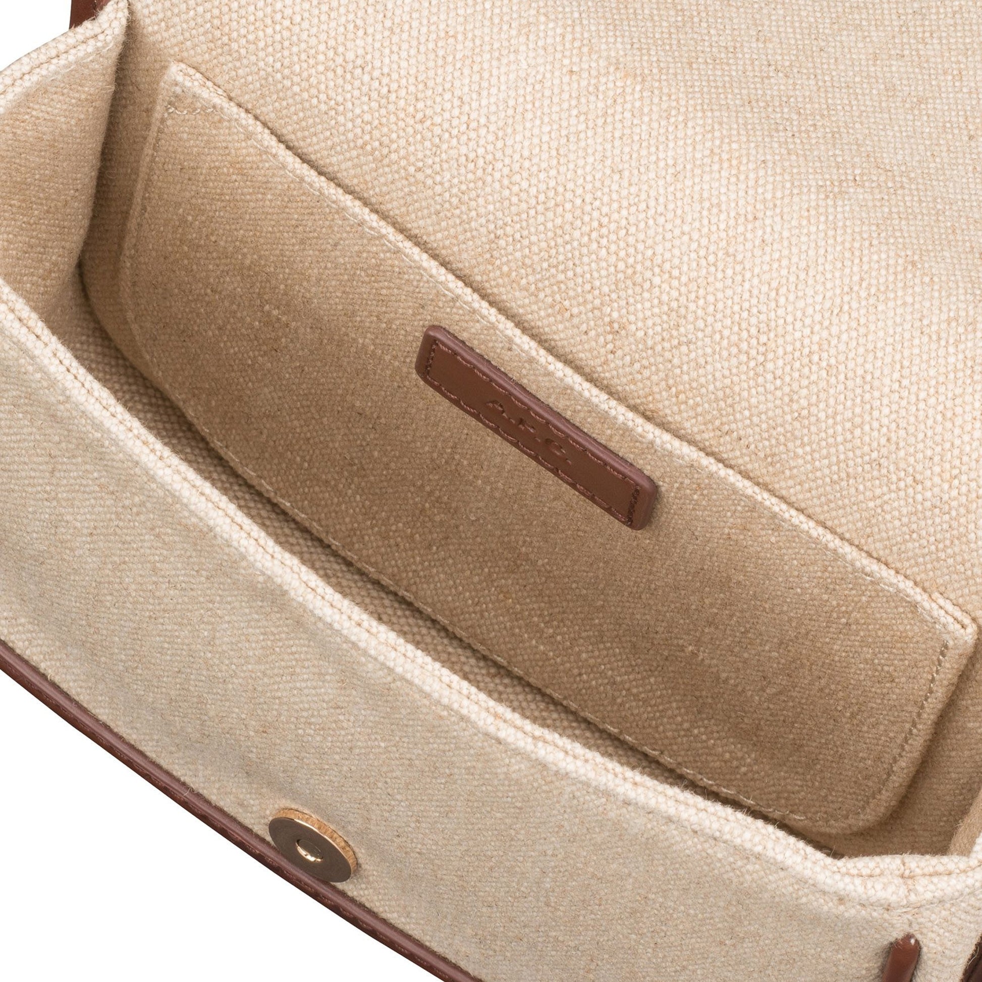 A.P.C. incorporates a contemporary Parisian sophistication offering classical tailoring, premium textiles and refined wardrobe essentials reflecting an unfussy elegance. An understated bag full of elegance, this crossbody is the perfect accessory for your casual looks. With an off-white jute fabric, and a nut-brown leather trim, this bag has beautiful gold hardware, with the logo embossed at the base. On the interior, this bag has one large compartment, with a smaller pocket, and a magnetic button fastening. Wear this bag as part of your everyday outfit rotation.