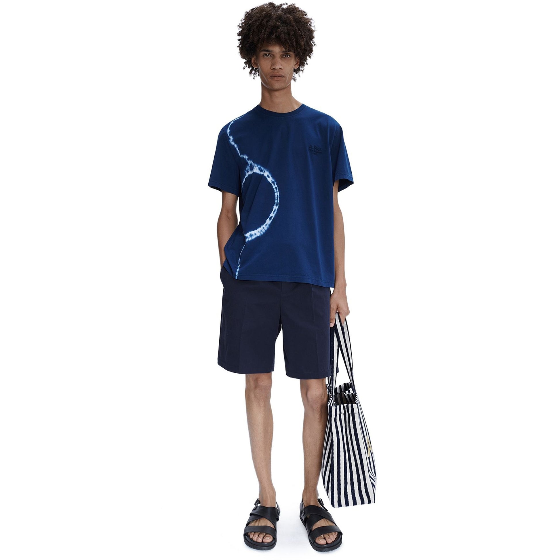 A.P.C. incorporates a contemporary Parisian sophistication offering classical tailoring, premium textiles and refined wardrobe essentials reflecting an unfussy elegance. A great way to add print to your tees, this top features a bled dye design on a navy base, with a ribbed crew neckline, and short sleeves. Wear this t-shirt with a pair of designer jeans.
