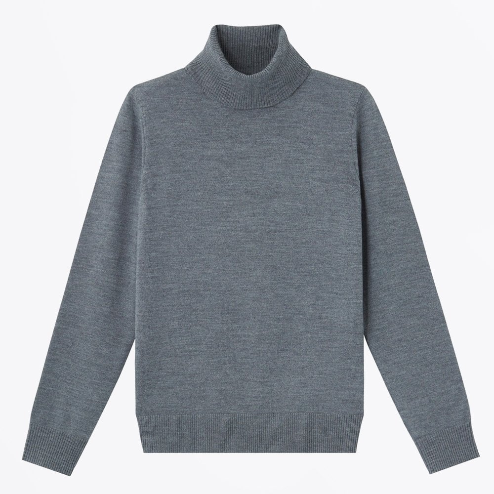 Introducing our newest French label, A.P.C. to Mr & Mrs Stitch. The brand incorporates a contemporary Parisian sophistication offering classical tailoring, premium textiles and refined wardrobe essentials reflecting a minimalist elegance. Your go-to label for effortless everyday wear! This understated grey roll-neck sweater is cut to a flattering relaxed fit and is crafted in a super soft biodegradable fabric making this pullover ideal for comfortable everyday wear! Designed in an Italian super fine merino wool with set-in sleeves, elasticated ribbing at wrist and hem and turtleneck collar this piece of knitwear generates a very feminine look and is the perfect transitional piece for your wardrobe. Team your sweater with jeans or midi skirt for an elegant weekend look!