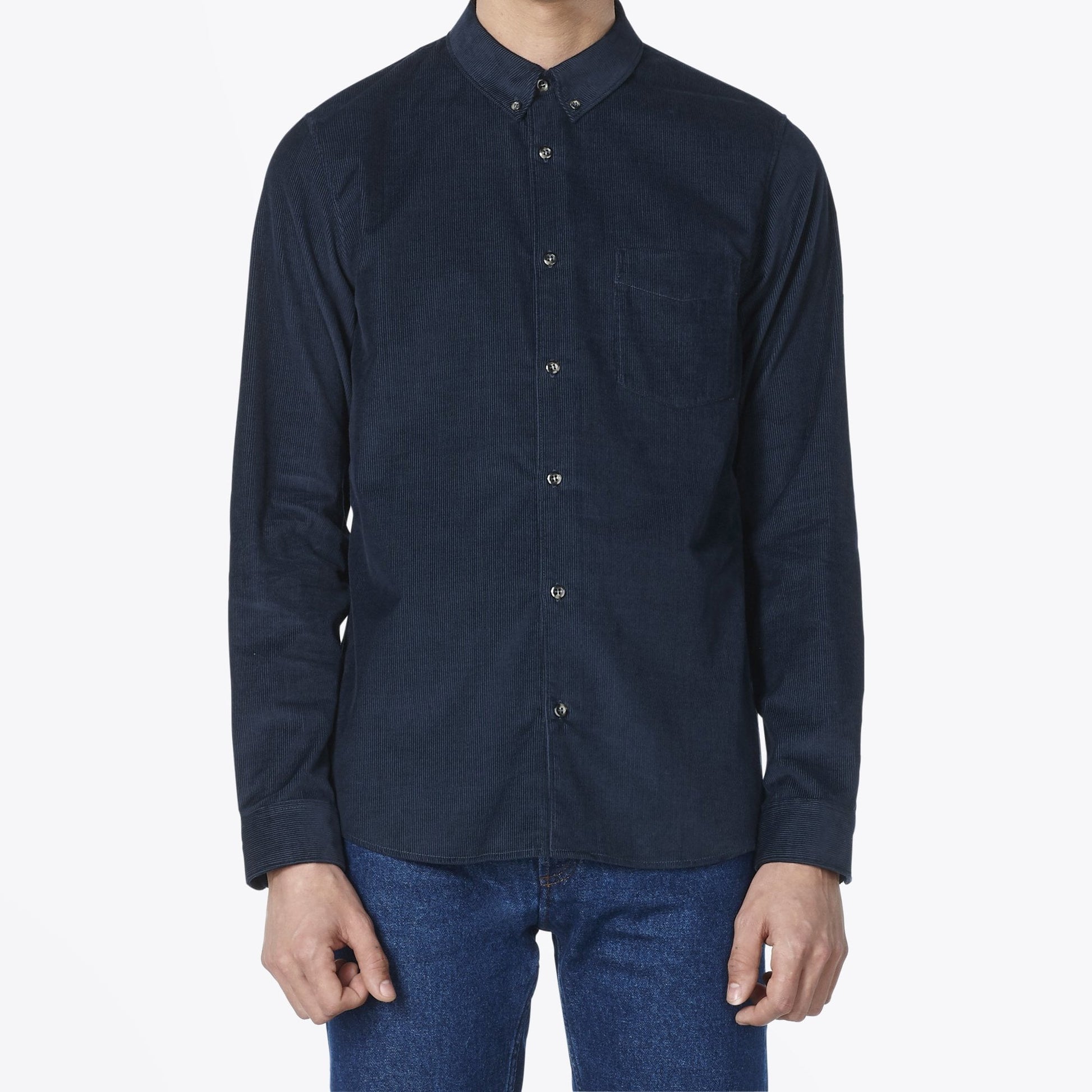Our newest French label, A.P.C. incorporates a contemporary Parisian sophistication offering classical tailoring, premium textiles and refined wardrobe essentials reflecting an unfussy elegance. This navy thin corduroy shirt hosts a pointed breast pocket and buttoned, topstitched collar and is constructed in a breathable 100% cotton providing a comfortable but stylish finish. Features of this shirt include long sleeves, buttoned placket with seven buttons, pleat and buttoned tab with pointed end at wrist and rounded buttoned cuff. Treat yourself with this refined shirt and pair with jeans to complete your look.