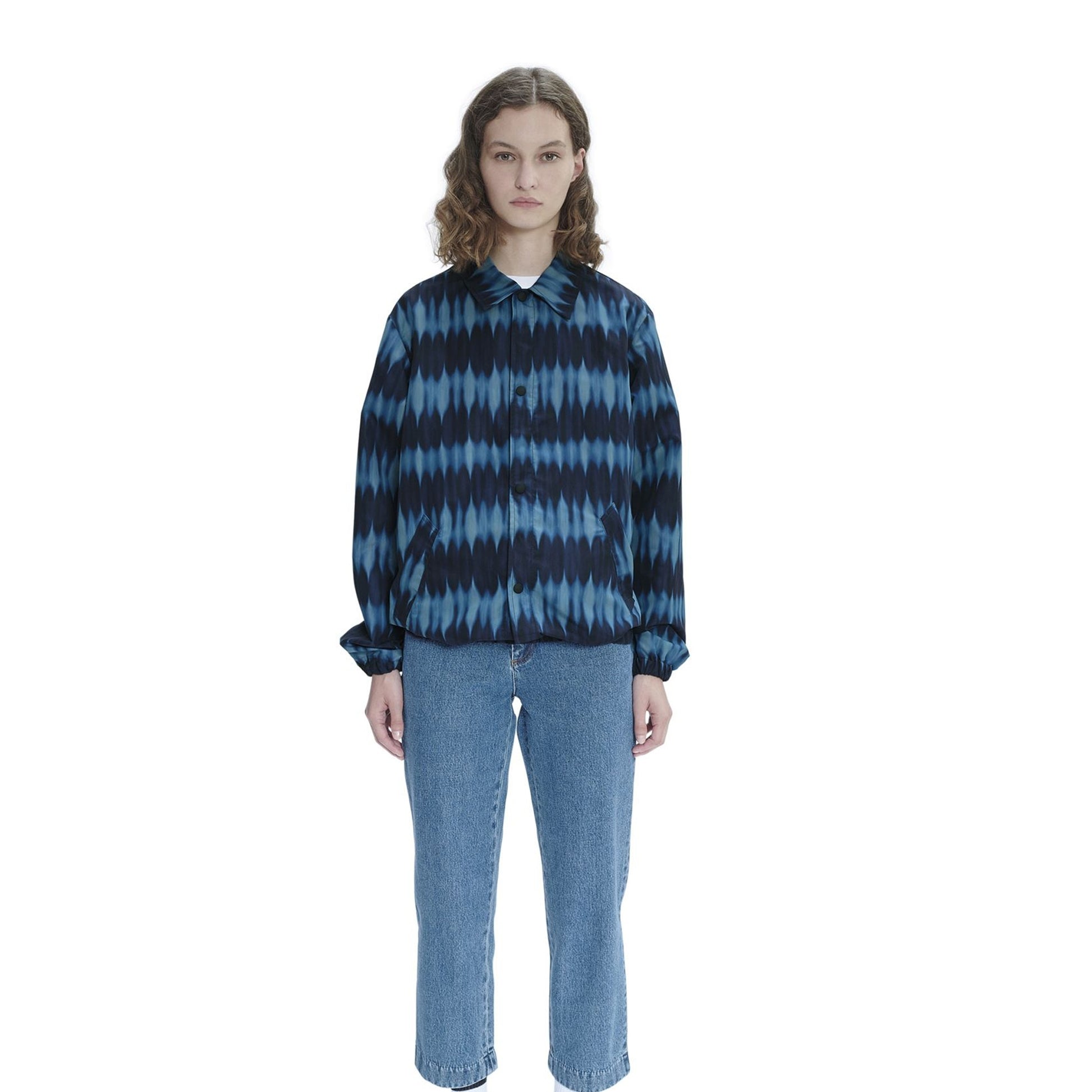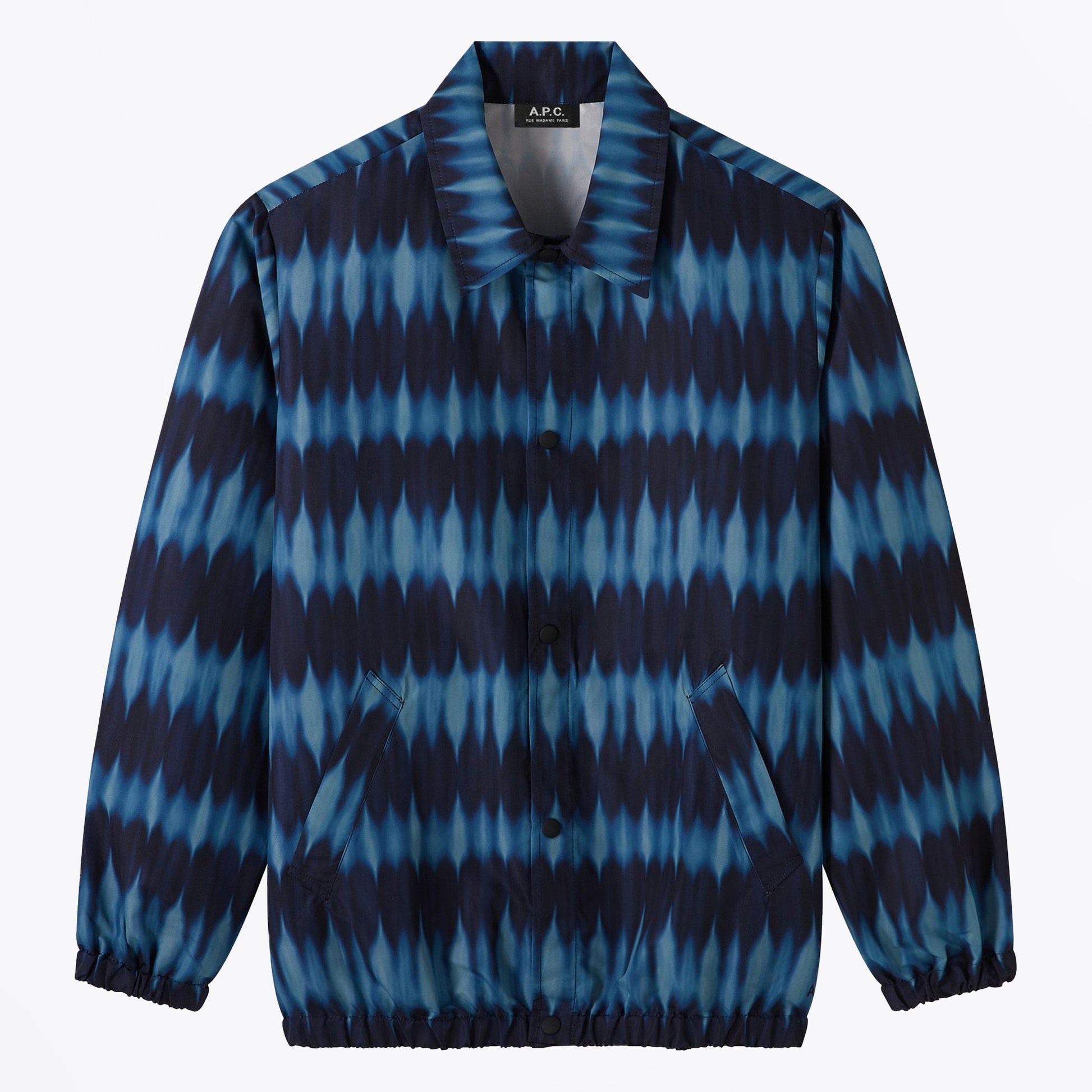 A.P.C. incorporates a contemporary Parisian sophistication offering classical tailoring, premium textiles and refined wardrobe essentials reflecting an unfussy elegance. A great way to add a touch of contemporary print to your look, this jacket features a bled through print in blue and navy, with a popper button fastening, a collared neckline, side pockets, and elasticated cuffs and hem. Wear this jacket with a plain tee and your favourite pair of designer jeans.