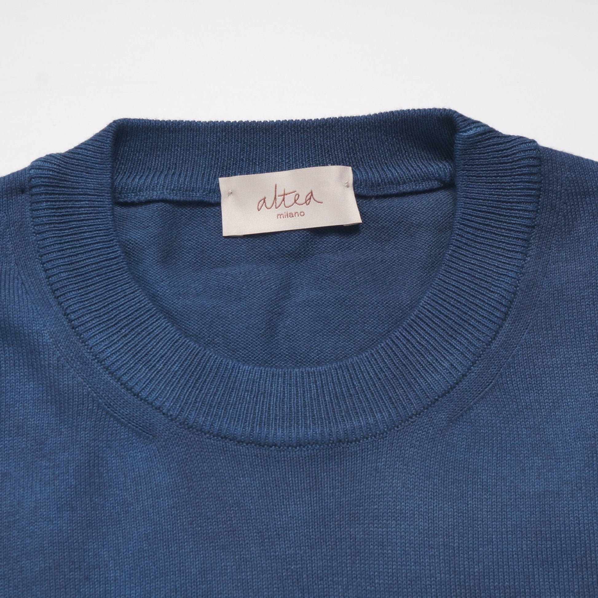 Altea is first and foremost, a textile brand that prides itself on their interesting textures and mastery of all that is woven and knitted. Being a family-owned brand founded in the late 19th centaury, Altea uses techniques formed from truly mastering their craft, while also embracing contemporary colours and designs. This jumper is crafted from a knitted cotton material, and features a deep blue tie-dye design, with ribbed neckline, cuffs, and hem. Wear this jumper with some Paige jeans and your favourite pair of designer trainers.