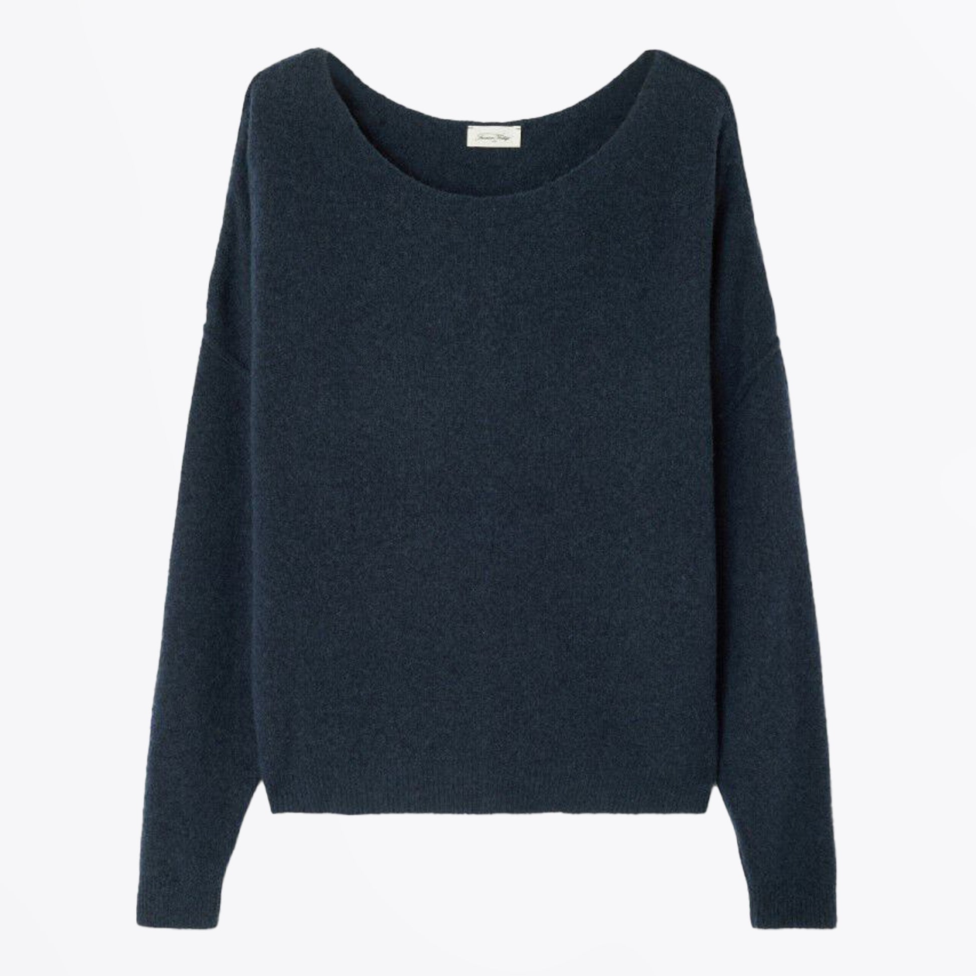 Introducing one of our newest women's labels, American Vintage to Mr & Mrs Stitch. Created in France in 2005 by Michael Azoulay, American Vintage has rapidly insinuated itself into the wardrobes of free-spirited young women through its timeless basics knits with their unique sense of simplicity.  American Vintage creates fashion that is stylish and comfortable, designed for free movement and subtle seduction. The soft and comfortable knitted Damsville long-sleeved jumper is a in a subtle deep navy featuring a boat neckline, visible stitching and a puffball cut. Its sweatshirt-inspired design goes great with some Paul Smith trousers and Hoff sneakers.
