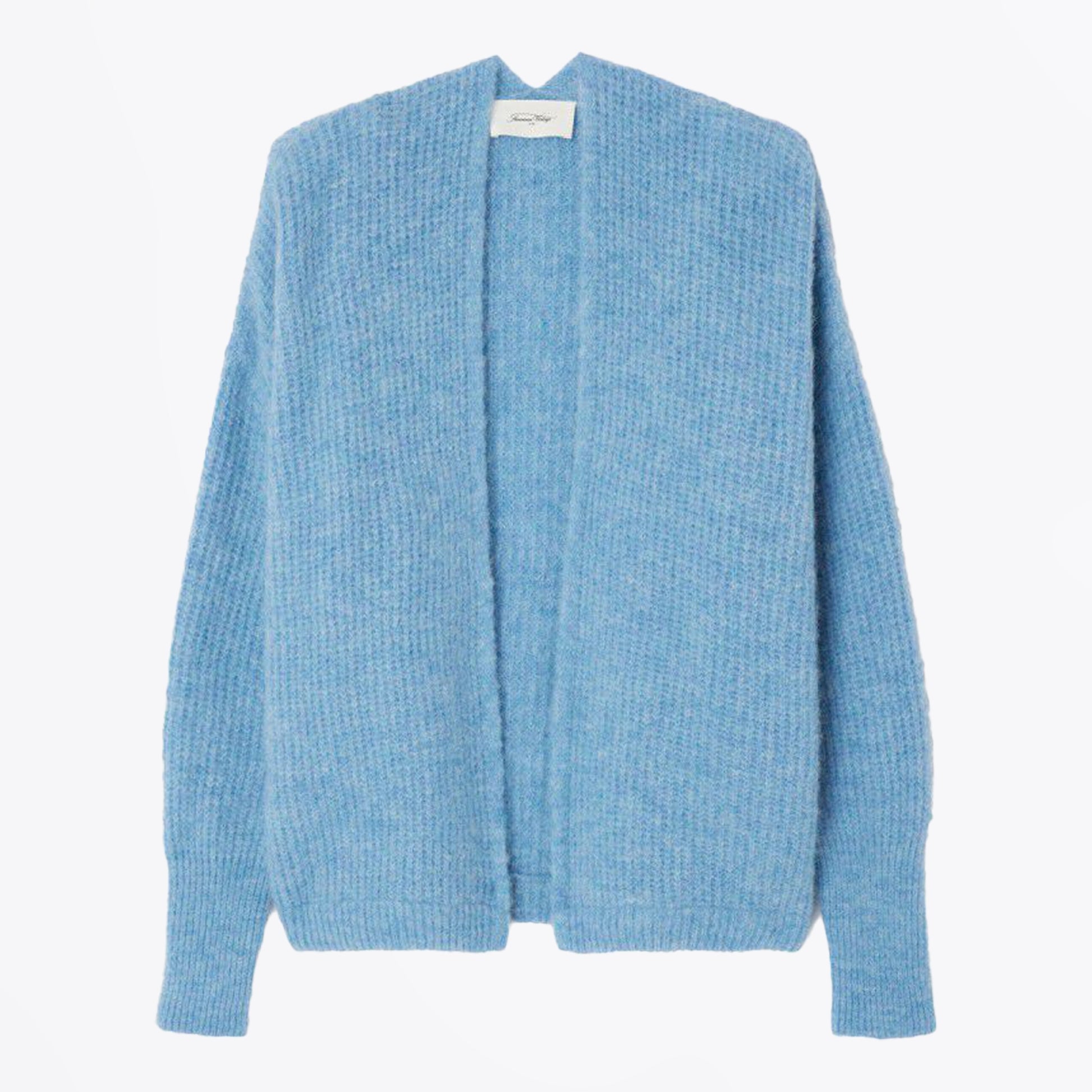 American Vintage  is one of our stand out women's labels at Mr & Mrs Stitch. Created in France in 2005 by Michael Azoulay, American Vintage has rapidly insinuated itself into the wardrobes of free-spirited young women through its timeless basics knits with their unique sense of simplicity.  American Vintage creates fashion that is stylish and comfortable, designed for free movement and subtle seduction. Adding casual comfort with designer quality to your seasonal outfits, this cardigan is crafted in soft knitted fabric, in a fashion forward sky melange shade, and features a front open, with a ribbed hem and ribbed cuffs. Wear this cardigan with a pair of Paige jeans and your favourite pair of Hoff sneakers.