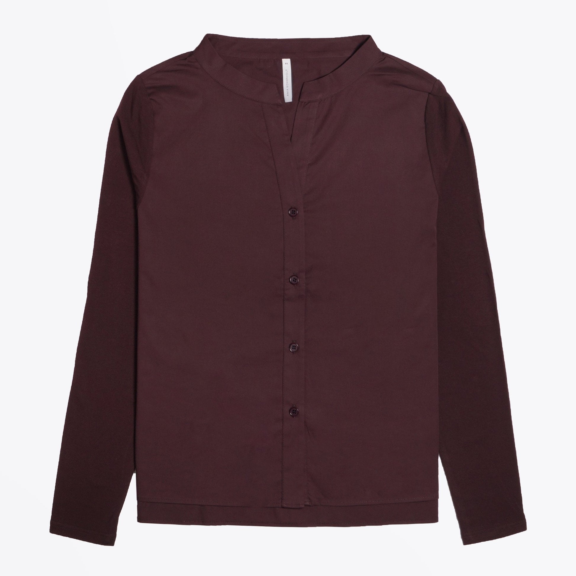 Ania Schierholt conveys contemporary, comfort and practicality in her designs. The flexibility in mixing and matching fabrics and masterfully cut lines complement the female silhouette exquisitely. This button-down blouse is cut in a relaxed style and crafted in a super soft cotton blend providing comfort and breathability for everyday wear! Features of this fresh top include mandarin-style collar, topstitching details, straight front hemline and long sleeves made in a stretchy fabric. This top has a longer length at the back and has a soft handle. A piece that is perfectly paired with and tucked into Ania Schierholt trousers!