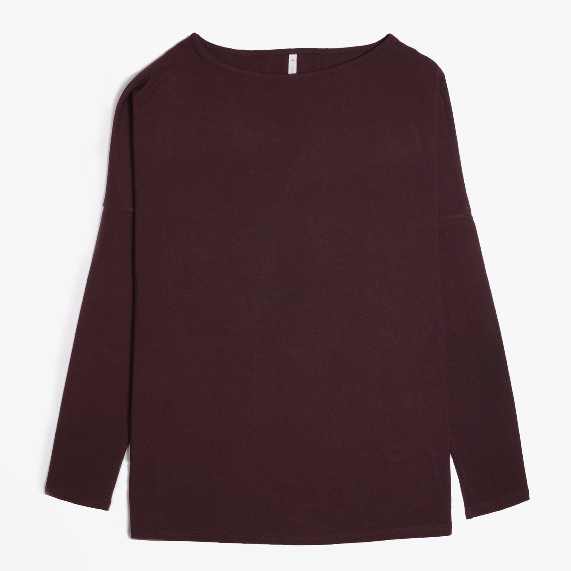 Ania Schierholt conveys contemporary, comfort and practicality in her designs. The flexibility in mixing and matching fabrics and masterfully cut lines complement the female silhouette exquisitely. This burgundy top is cut in a relaxed, slouchy style and crafted in a super soft cotton blend providing comfort and breathability for everyday wear! Features of this stylish top include long sleeves, round wide neckline, slight panel detailing on the arms, topstitching details and has a soft, cotton handle. This top also has a straight hemline. A piece that is perfectly paired with Ania Schierholt trousers. This top will take you through the whole year!