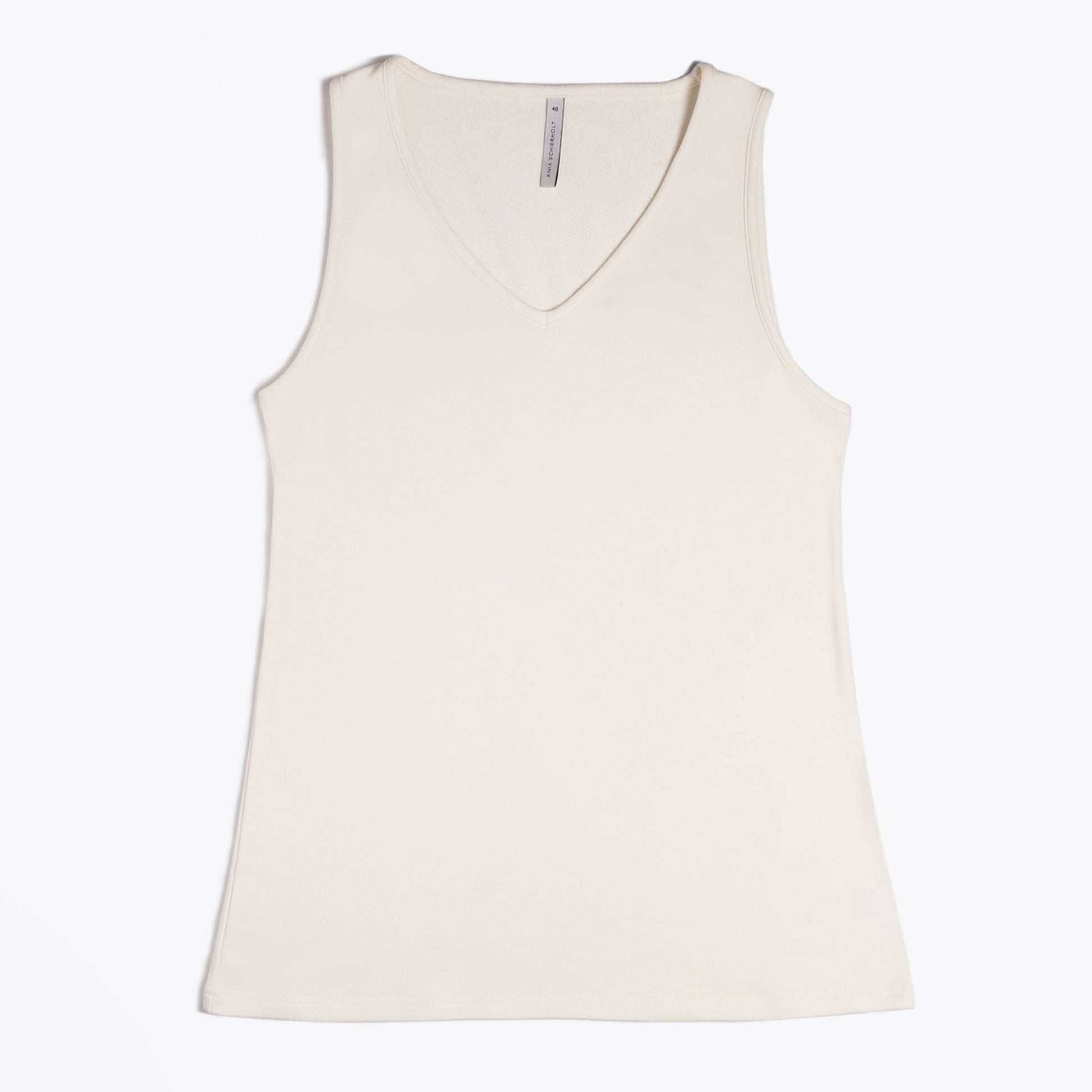 Ania Schierholt conveys contemporary, comfort and practicality in her designs. The flexibility in mixing and matching fabrics and masterfully cut lines complement the female silhouette exquisitely. This v-neck tank top is crafted in a premium modal-blend fabric blend with a sporty-style aesthetic. A key feature of this sleeveless top is the very smooth, soft handle with stretch. Added features include a v-neckline, topstitching details and a slight flare at the waist. Pair with the matching Ania Schierholt trousers to complete your look!
