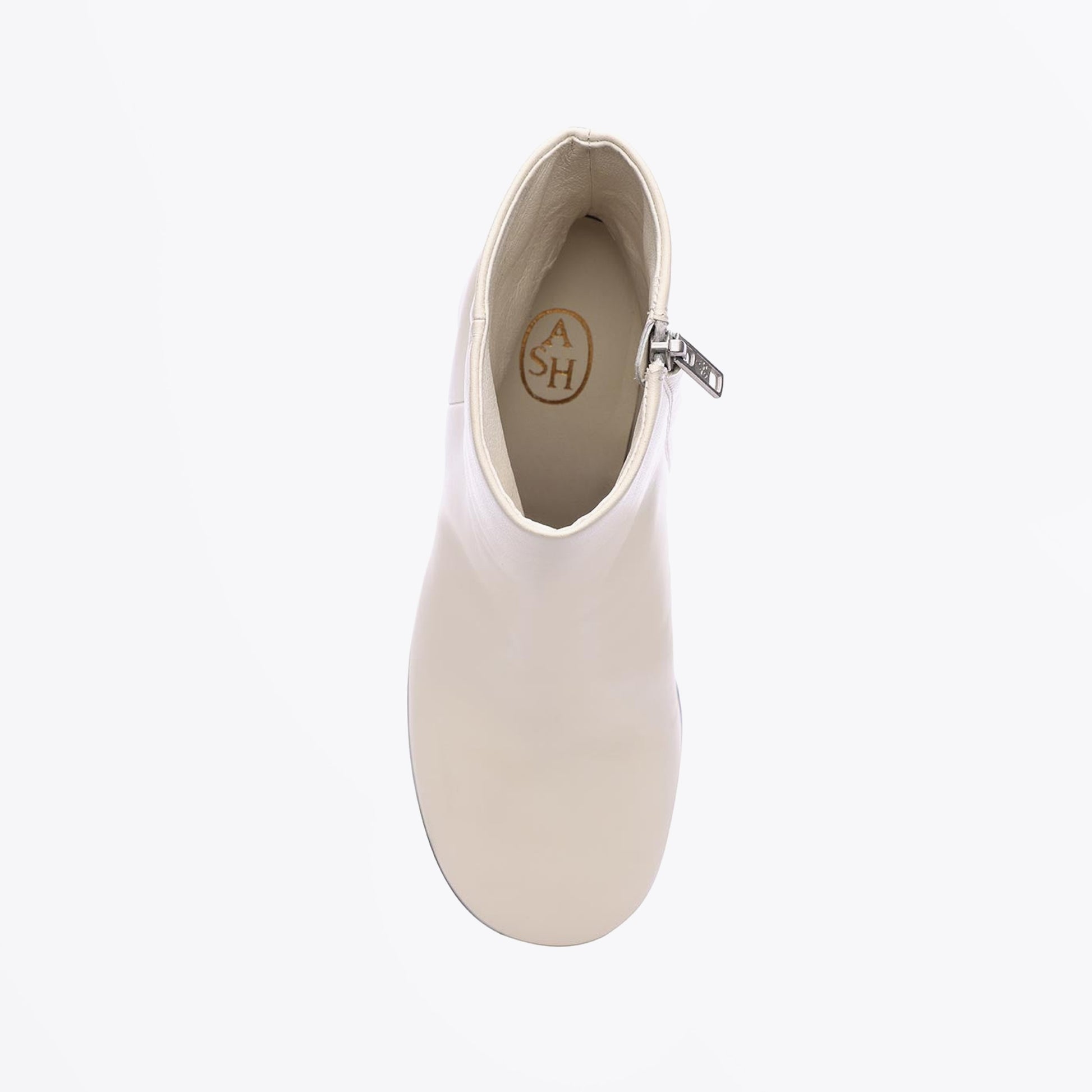 Founded in 2000, Ash footwear combines the knowhow and passion of directors Leonello Calvani and Patrick Ithier. Fusing their creative vision with the finest Italian leathers, Ash shoes embody a lifestyle of music, travel, and adventure. They combine high quality Italian leather material with rich French design. Their style is vibrant and sophisticated but practical and comfortable too. These boots feature a cream leather design, featuring a leather upper, cylindrical block heel, side zip fastening and rounded toe shape. Wear these boots with your favourite designer dress.