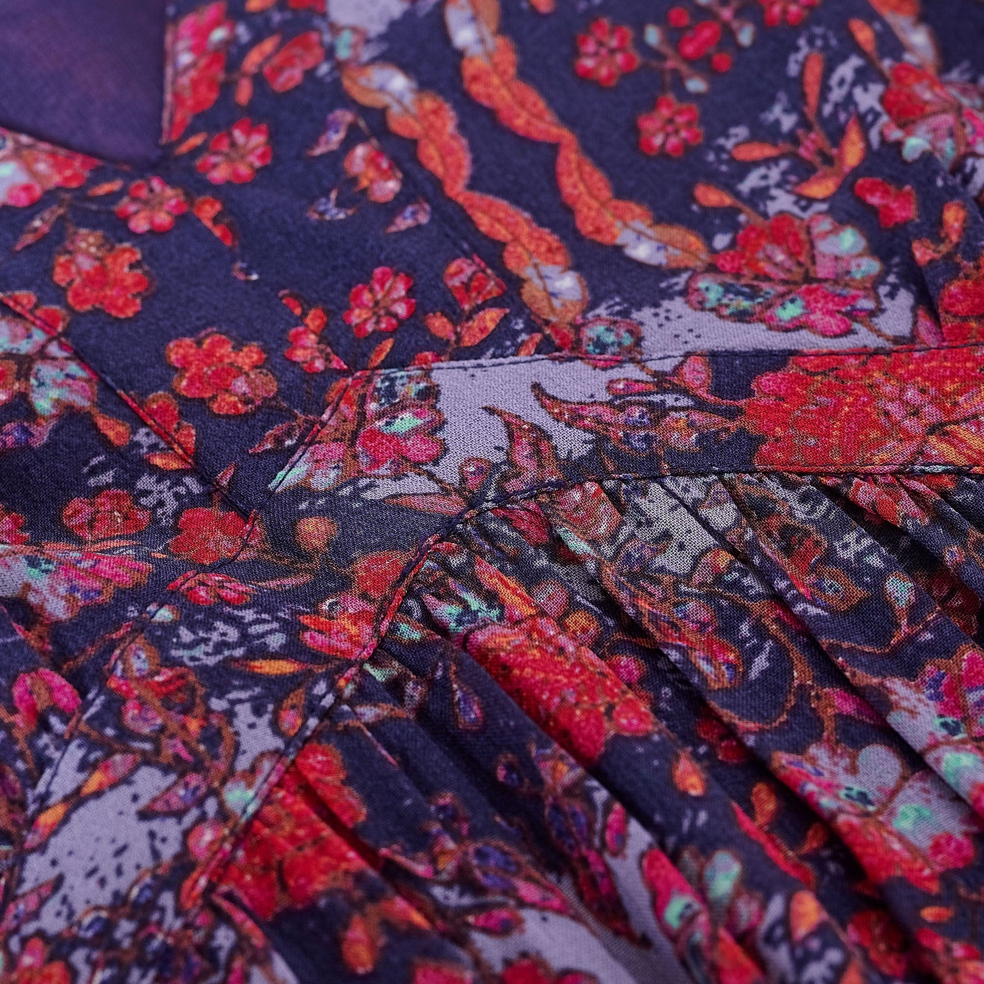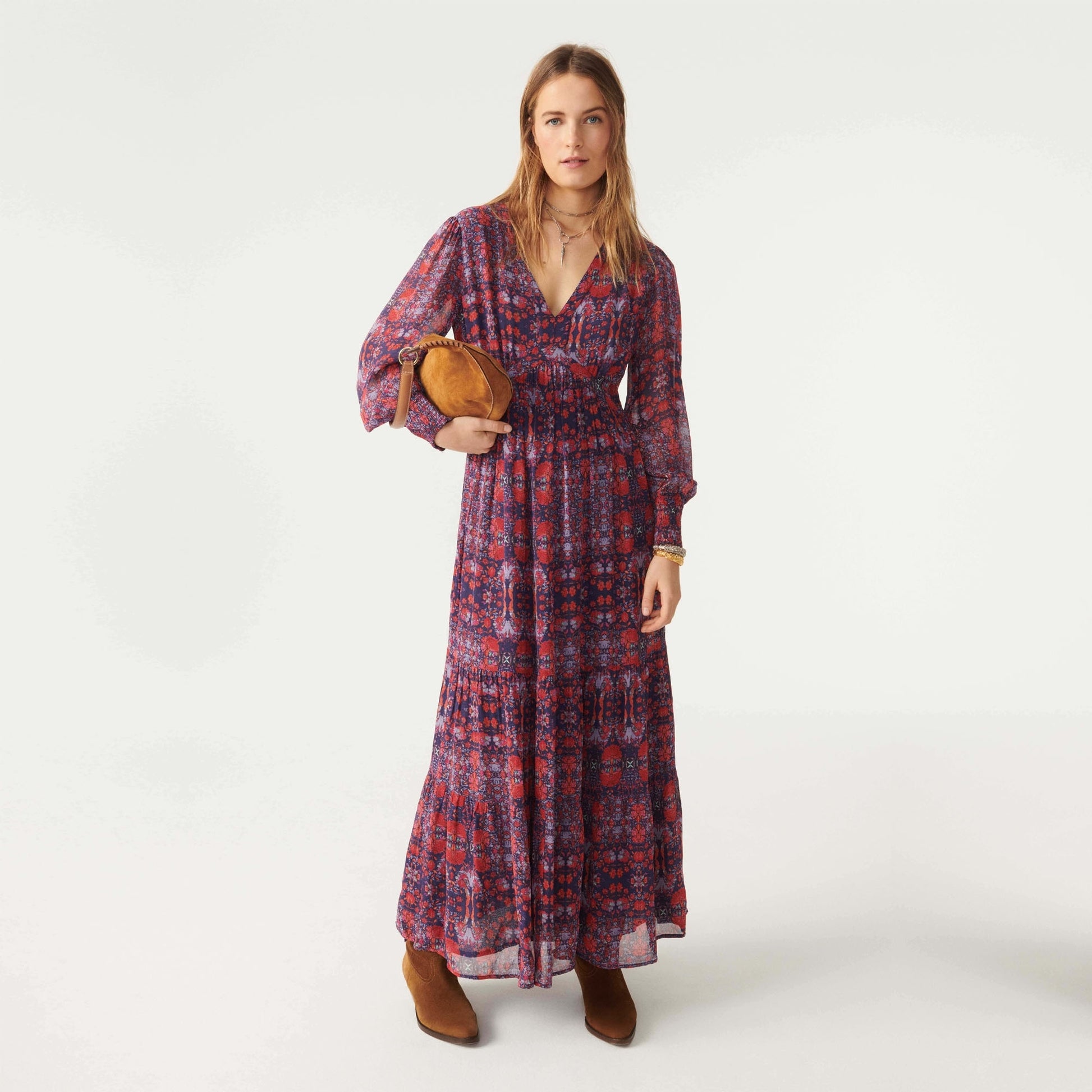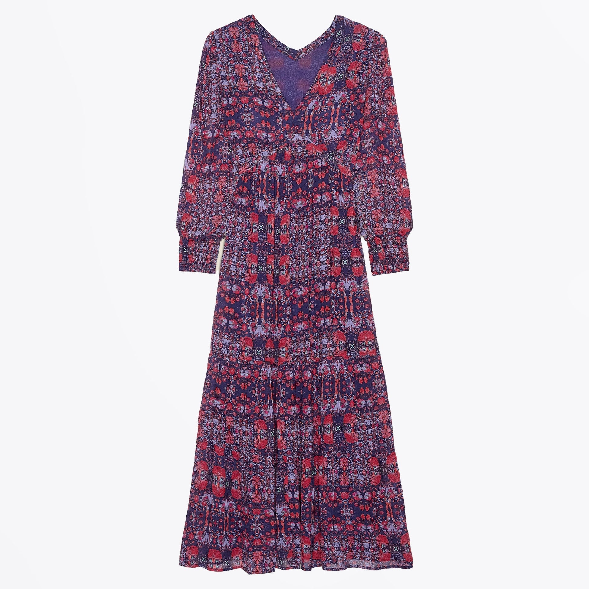 Ba&sh pride themselves on putting women first in the production of clothes, designing pieces that women actually want to wear. Through their designs, they are building a more inclusive society that celebrates all body shapes and sizes. Adding interesting print and a flattering shape to your dresses, this dress features a multi-coloured botanical print, with a v-neckline, a pleated waistline, elasticated cuffs, and full sleeves. Wear this with a pair of designer trainers for a casual look.