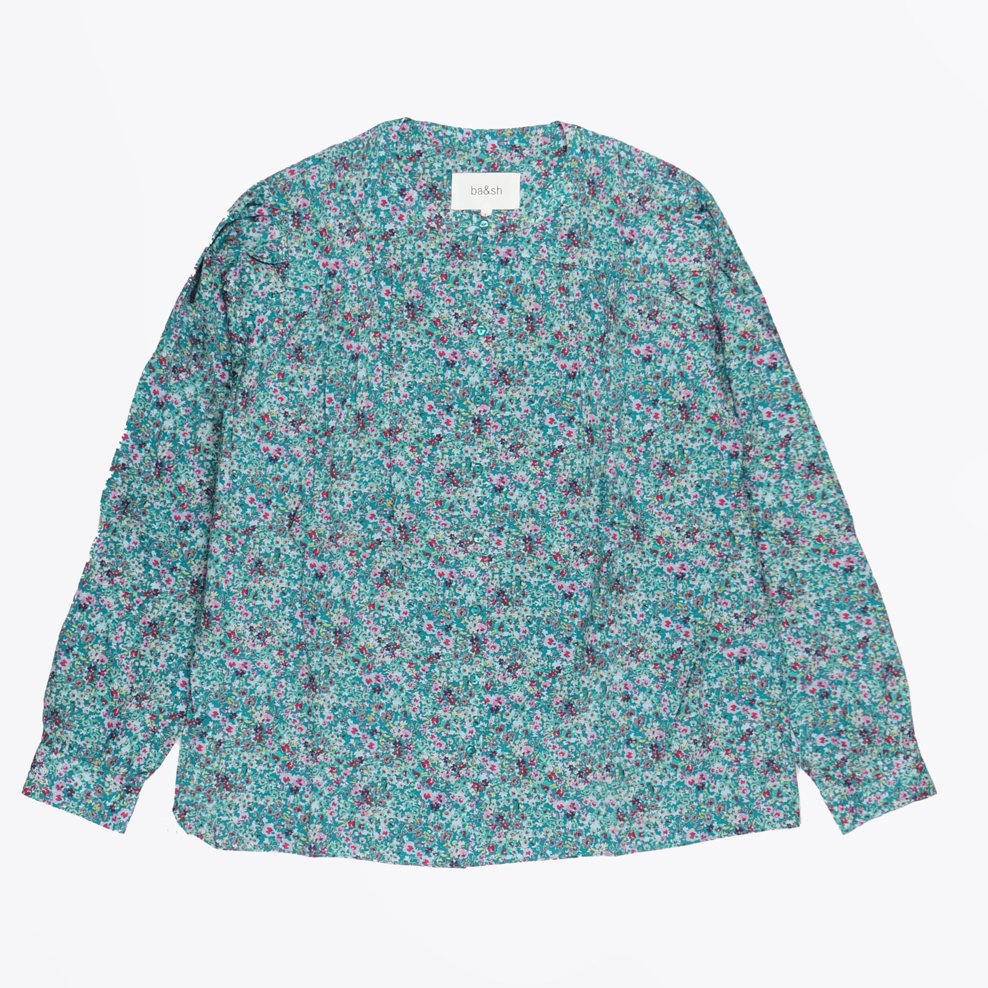 Ba&sh pride themselves on putting women first in the production of clothes, designing pieces that women actually want to wear. Through their designs, they are building a more inclusive society that celebrates all body shapes and sizes. Adding fun florals with a vintage feel, this shirt features a ditsy floral print in shades of pink on a green base, with pleated details at the shoulders, full sleeves, and buttoned cuffs. Wear this blouse under an Ottod’ame coat and with a pair of Citizens of Humanity jeans.