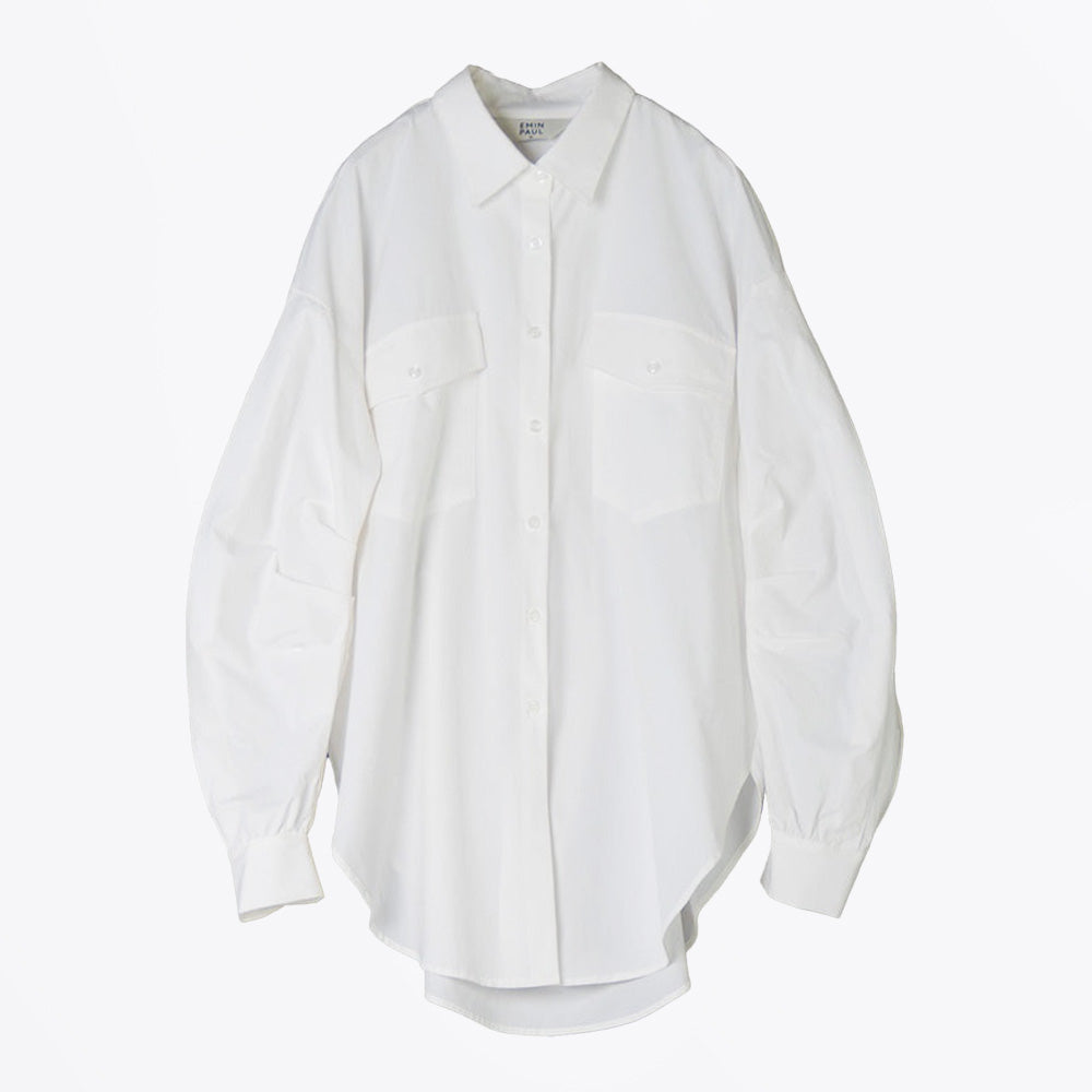 Elevate your style with our White Back Gathered Shirt. The relaxed fit, rounded sleeves, and subtle gathering at the back create a flattering silhouette. Made with crisp 100% cotton, this versatile piece is perfect for any occasion. Model is 177cm / 5’10″ and wears size SM.