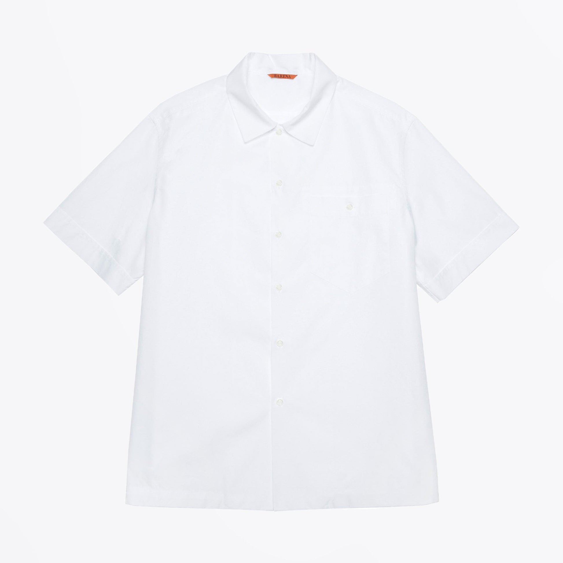 Contemporary designer Barena mimics the qualities of traditional workwear with a modern aesthetic. Precise tailoring, exquisite fabrics, attention to detail and confident versatility are the pillars of the brands philosophy.  With close attention to detail, this white shirt is minimally detailed and is crafted in 100% cotton and offers a tactile way to incorporate the look into the everyday edit. Features of this boxy shape shirt includes a classic soft collar, short sleeves, patch pockets and button-down placket. Pair with jeans or chinos.