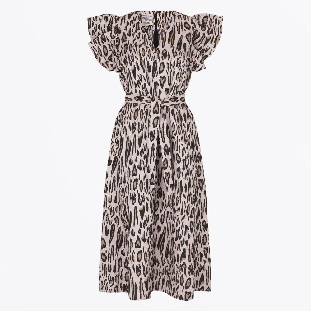 Baum und Pferdgarten is a Copenhagen-based label known for coveted collections embodying an ageless and exclusive approach to clothing and producing beautiful materials, bold colours and striking prints. This is from the SS21 collection and features a gorgeous leopard print, jaquard-esk material, in a soft pink with black and gold details.