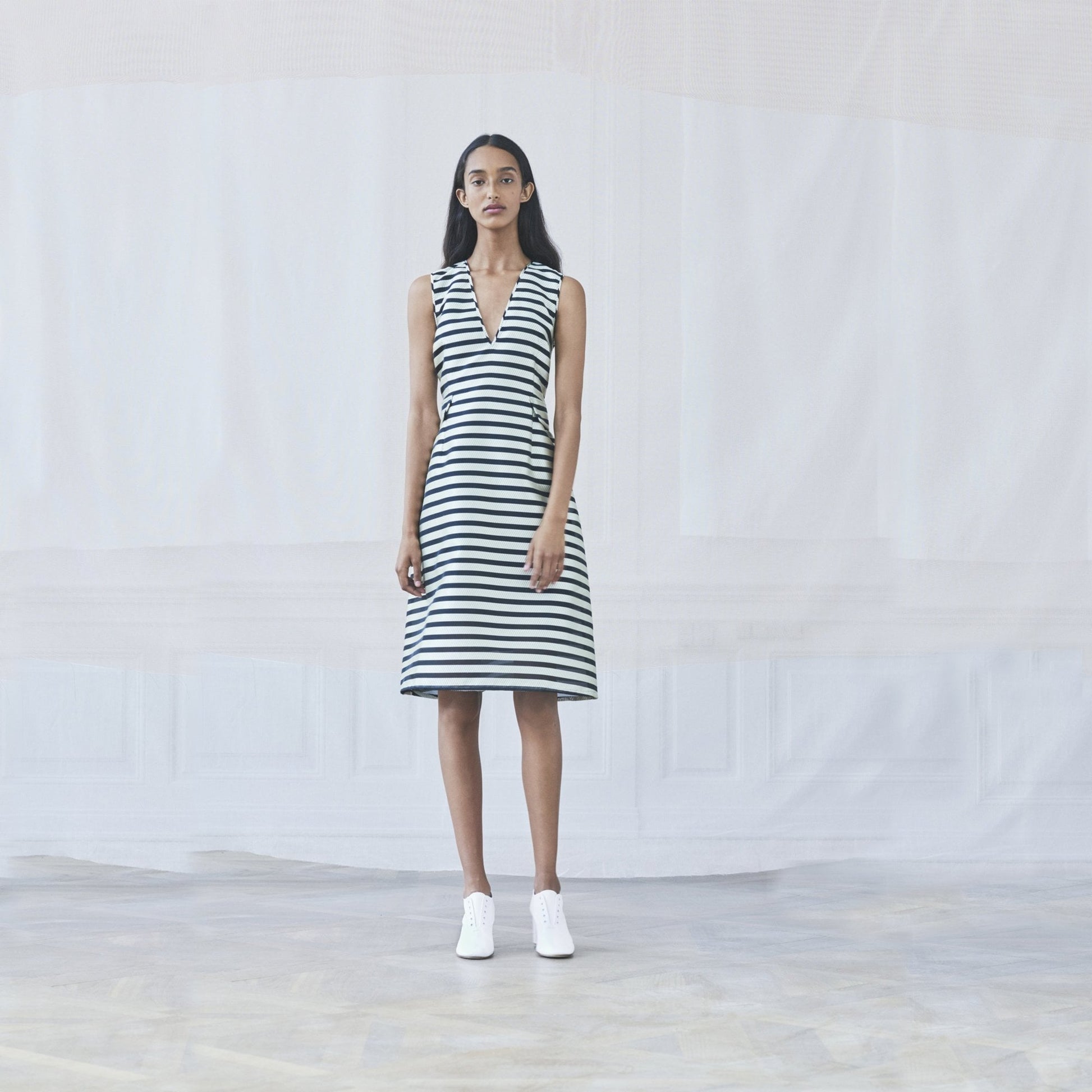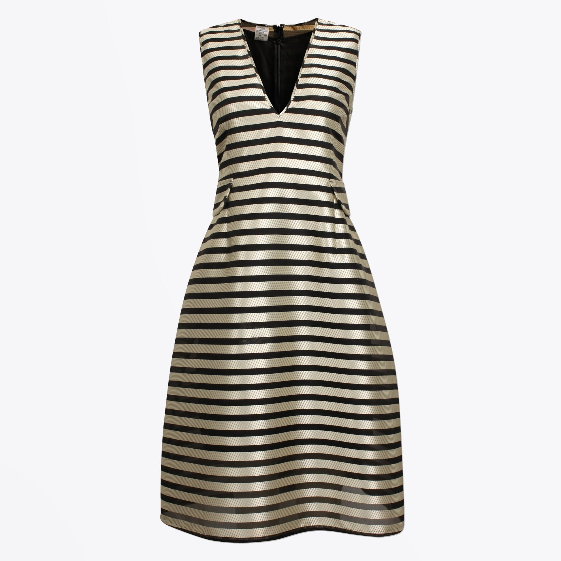 Baum und Pferdgarten is a Copenhagen-based label known for coveted collections embodying an ageless and exclusive approach to clothing and producing beautiful materials, bold colours and striking prints. This midi dress with deep v-neck and pocket flaps is from the SS19 collection. Features include a nipped waistline and a full skirt. Perfect for a wedding or dress down with a pair of trainers.