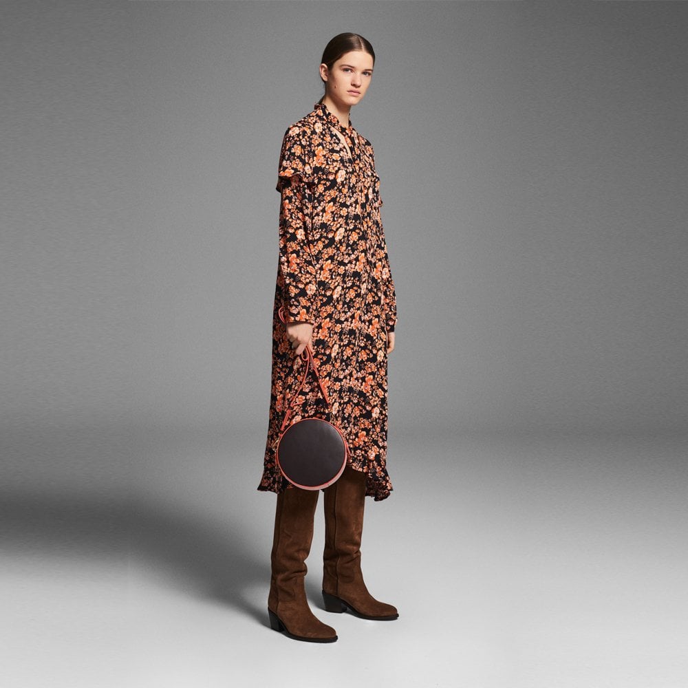 Baum und Pferdgarten is a Copenhagen-based label known for coveted collections embodying an ageless and exclusive approach to clothing and producing beautiful materials, bold colours and striking prints. Ani Dress in floral print crafted in a mid-weight viscose. This loose fitted midi dress features a pussy bow tie at the front of the neck. This feminine style has been designed with long sleeves with flared shoulder details, two side pockets, v-neckline and is dipped at the back and slightly shorter at the front. A beautiful piece that could be worn with ankle boots and short fitted jacket.