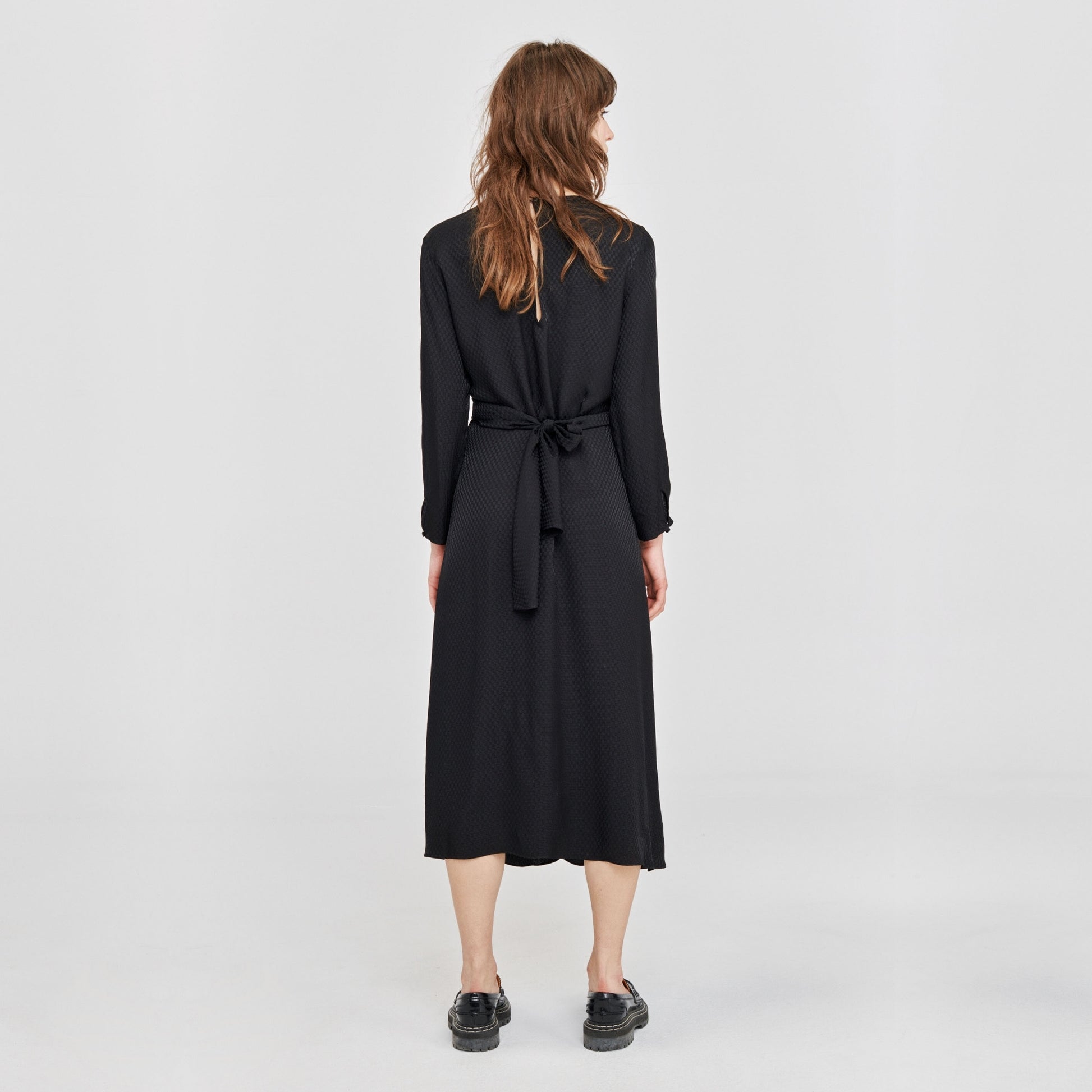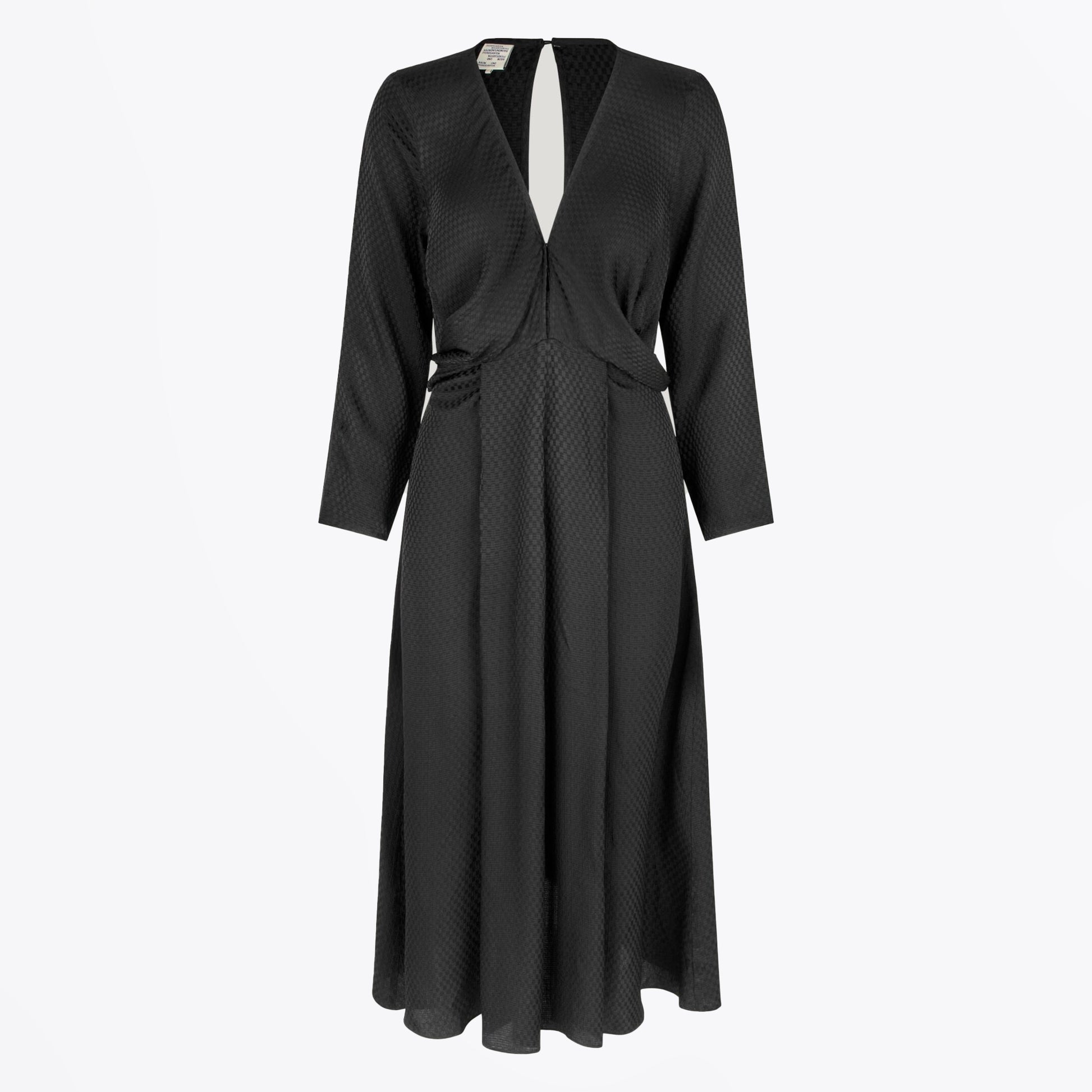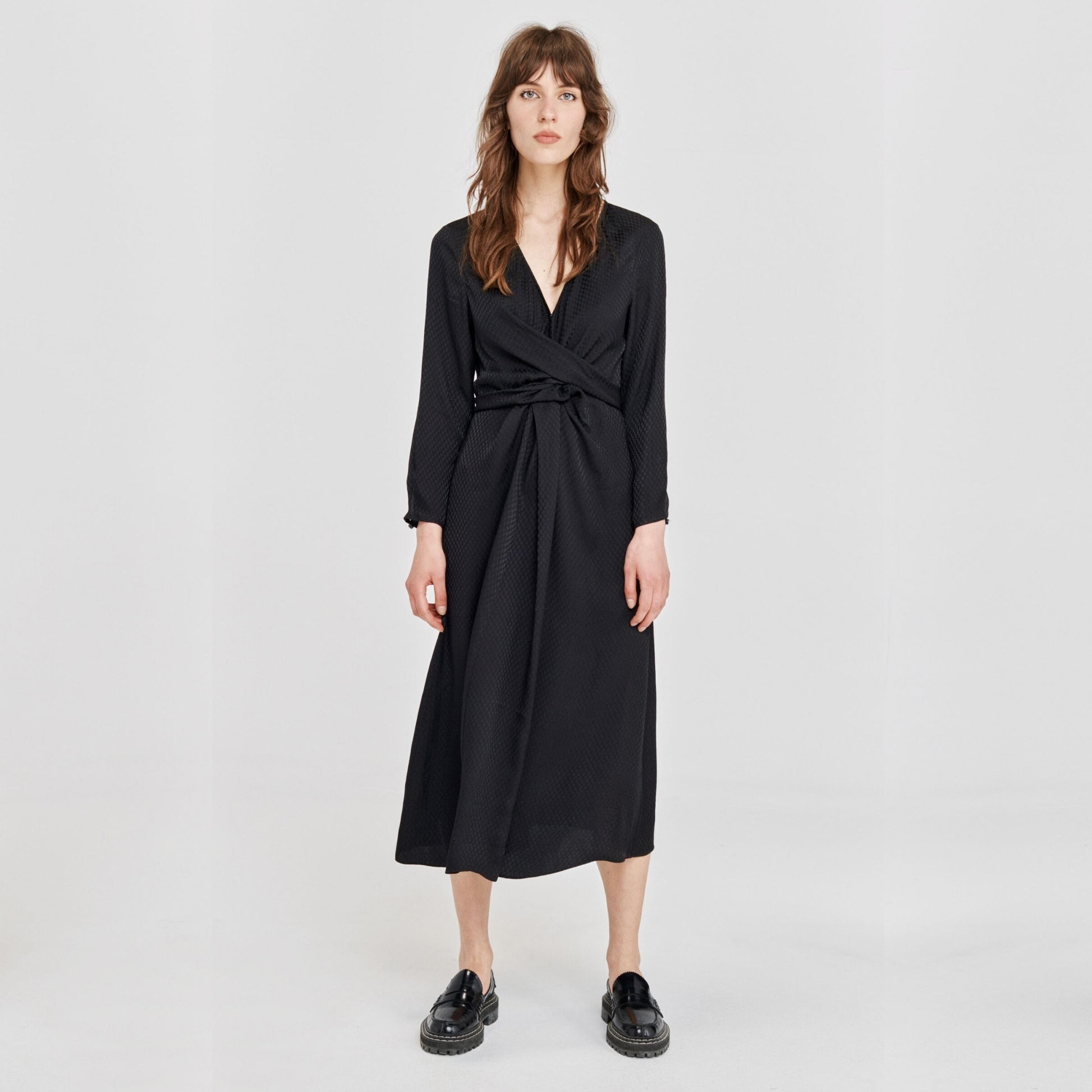 Baum und Pferdgarten is a Copenhagen-based label known for coveted collections embodying an ageless and exclusive approach to clothing and producing beautiful materials, bold colours, and striking prints. Add some simple elegance to your dresses this season with this option from Baum und Pferdgarten. This dress features a twist tied front with a v-neckline, a keyhole back with a button fastening, long sleeves and a tied waist. Style this dress with a pair of heels for a styled-up look, or with some Veja trainers for a great paired down look.