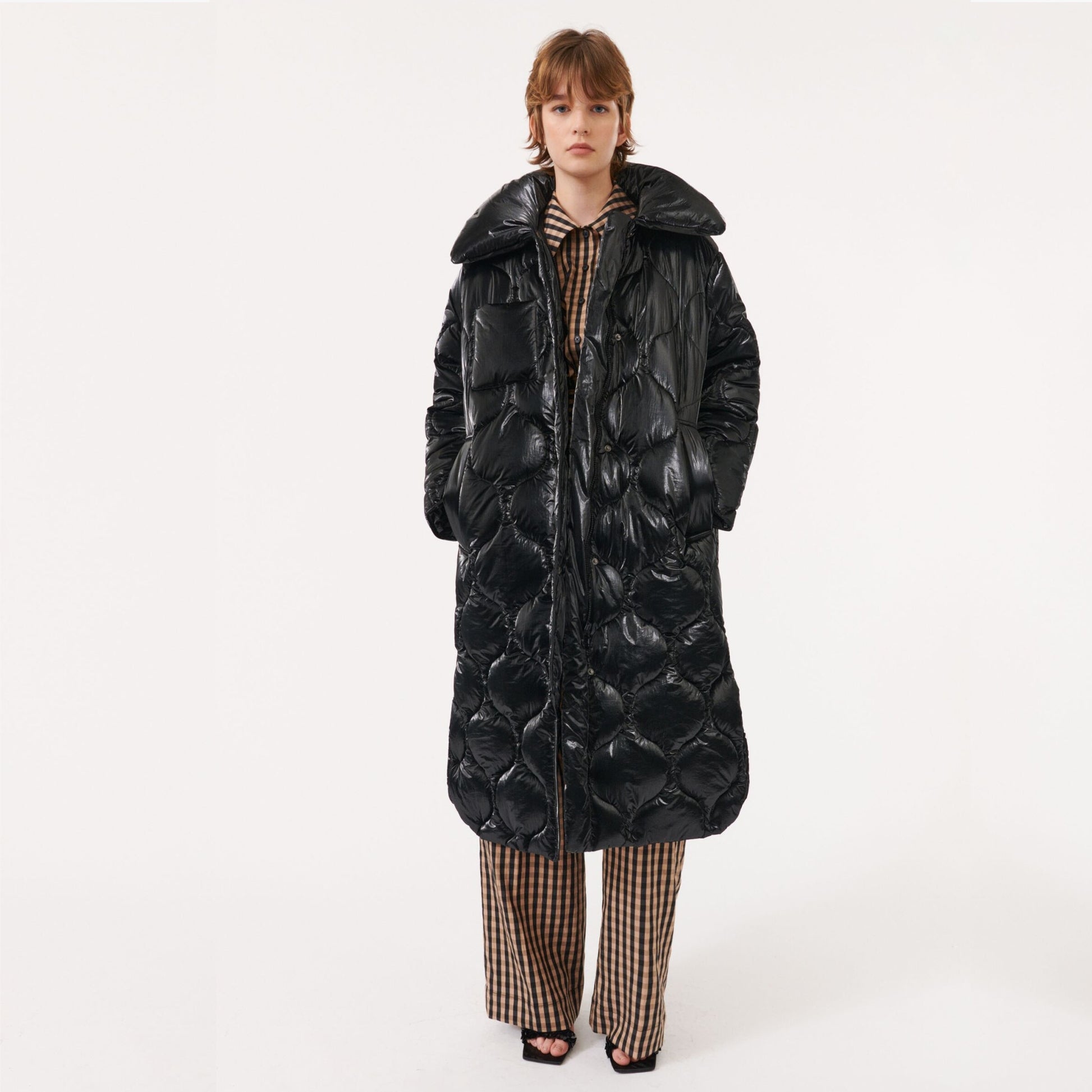 Baum und Pferdgarten is a Copenhagen-based label known for coveted collections embodying an ageless and exclusive approach to clothing and producing beautiful materials, bold colours, and striking prints. Update your winter wardrobe with a statement coat from Baum und Pferdgarten. Crafted in a chic black shade, this coat features a quilted design with long sleeves, contrasting black popper button fastenings, a breast pocket, and side pockets. Wear this coat over your casual looks this season to add some colour to your look.
