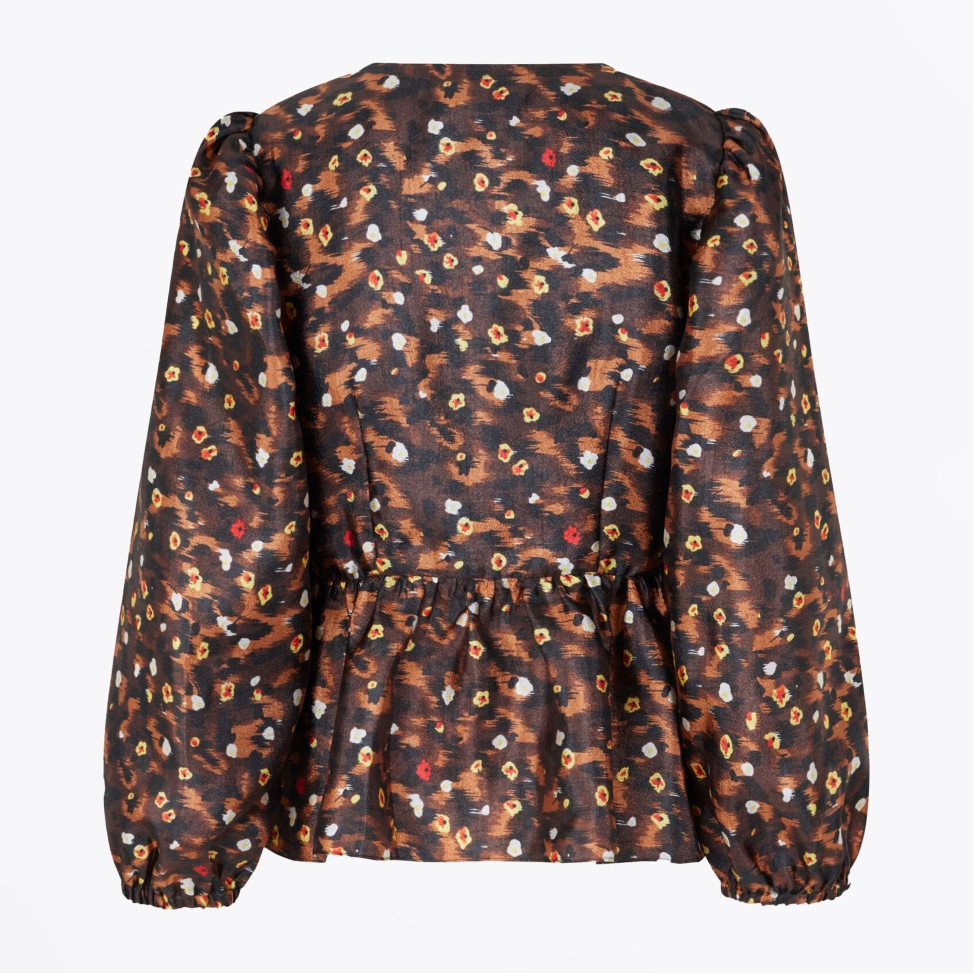 Baum und Pferdgarten is a Copenhagen-based label known for coveted collections embodying an ageless and exclusive approach to clothing and producing beautiful materials, bold colours, and striking prints. Add some interesting patterns to your winter wardrobe with this top from Baum und Pferdgarten. This blouse is crafted with a brown toned floral print, and features a fitted upper body with a frill, full sleeves, a v-neckline, and elasticated cuffs. Wear this top with a pair of designer jeans and some heeled boots.