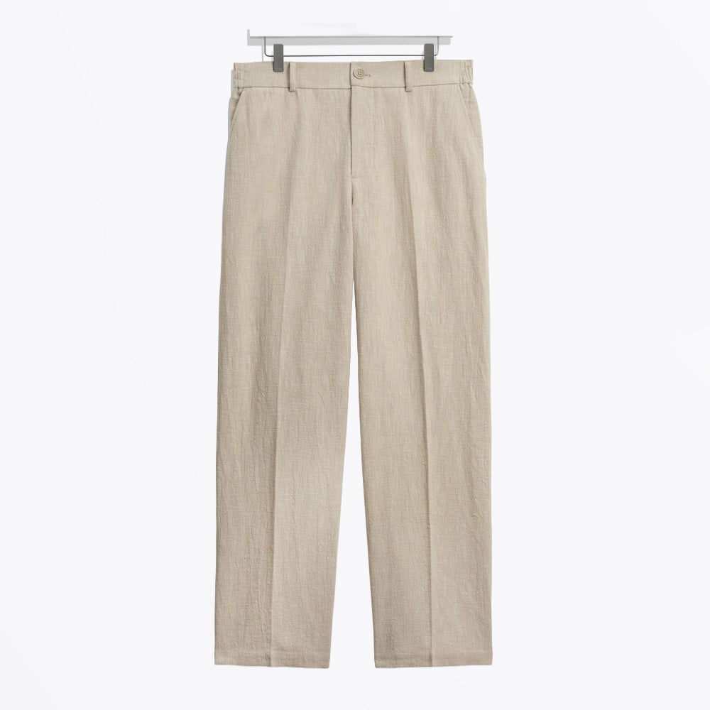 Crafted from a premium cotton-linen blend, the Bayham Trouser delivers refined versatility for the modern wardrobe. The natural fiber composition offers breathability and durability, while the smart tailoring ensures a polished silhouette suitable for both professional and casual settings. The neutral tone pairs effortlessly with any ensemble, making this a timeless investment piece that transitions seamlessly across seasons and occasions.