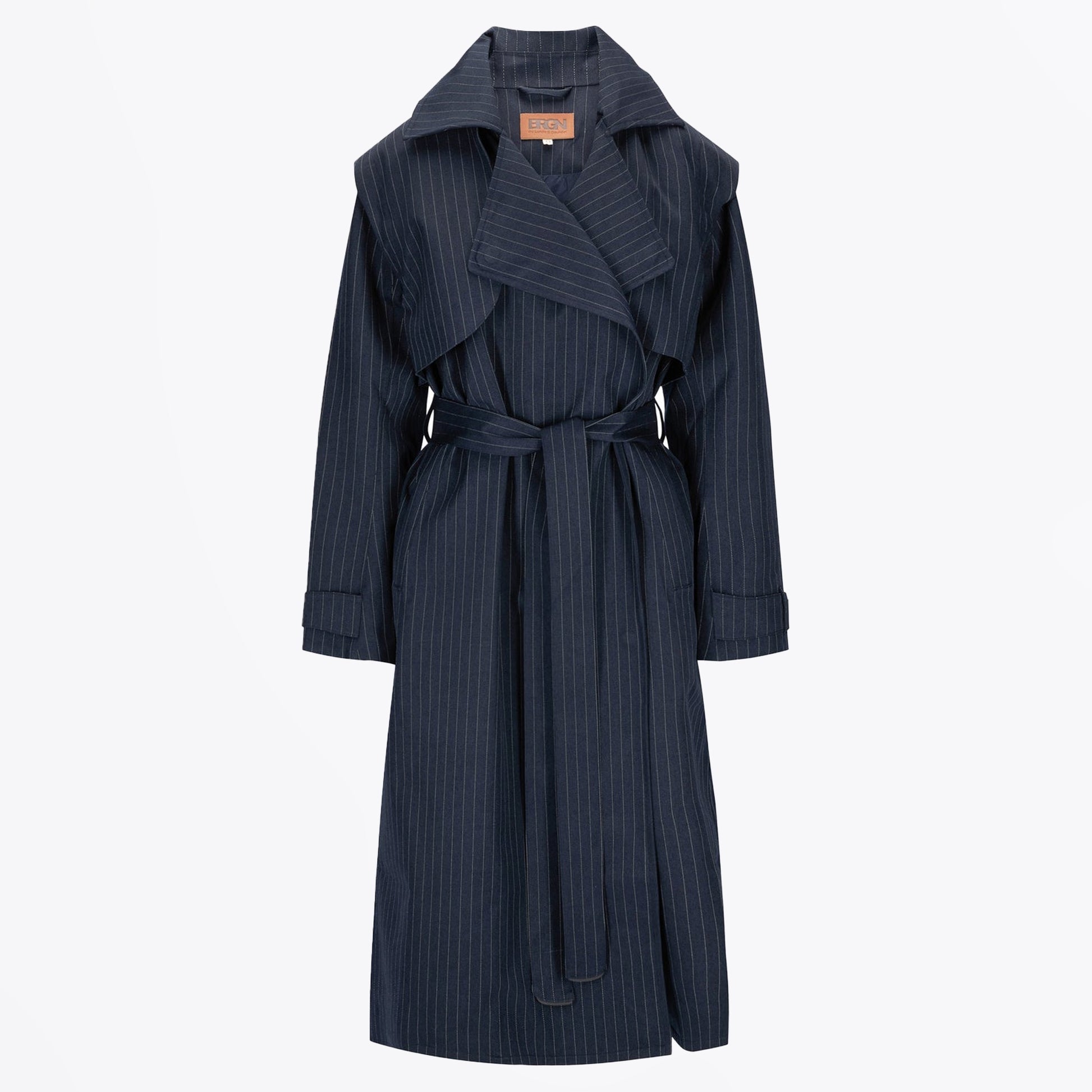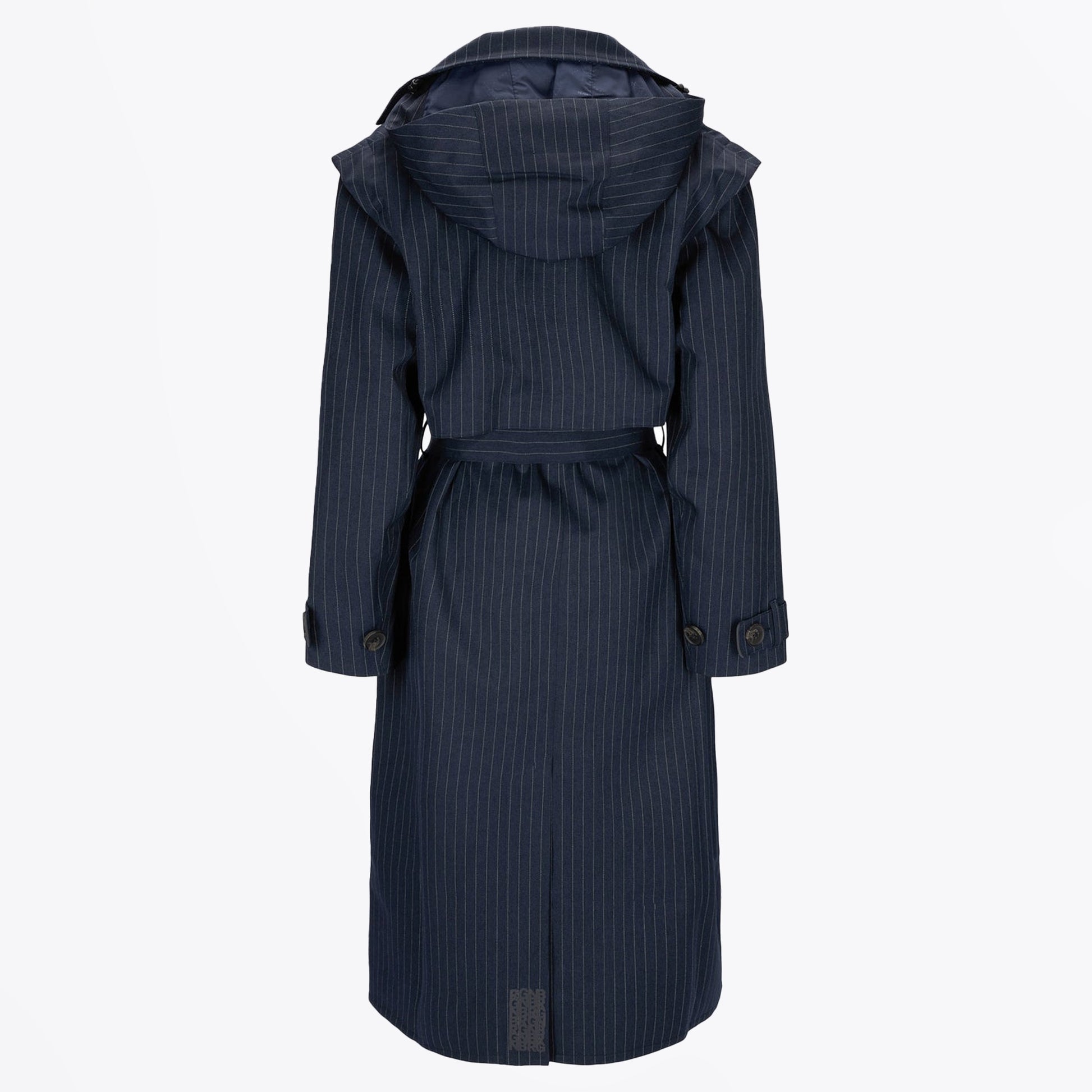 Introducing the SS 24 season of BRGN. The brand is a Norwegian brand founded in 2015 in the city of Bergen the rainiest city in Europe which inspired the brand to focus on Rainwear attire. The brands’ goal is not to compromise fashion for functionality, providing modern urban high quality and waterproof outerwear. This Regndrape trench coat features a pinstripe navy design, lapel collar, removable hood under collar, side welt pockets, magnetic closure, hidden zip fastening and waist tie. Wear this coat with any of your favourite designer outfuts.
