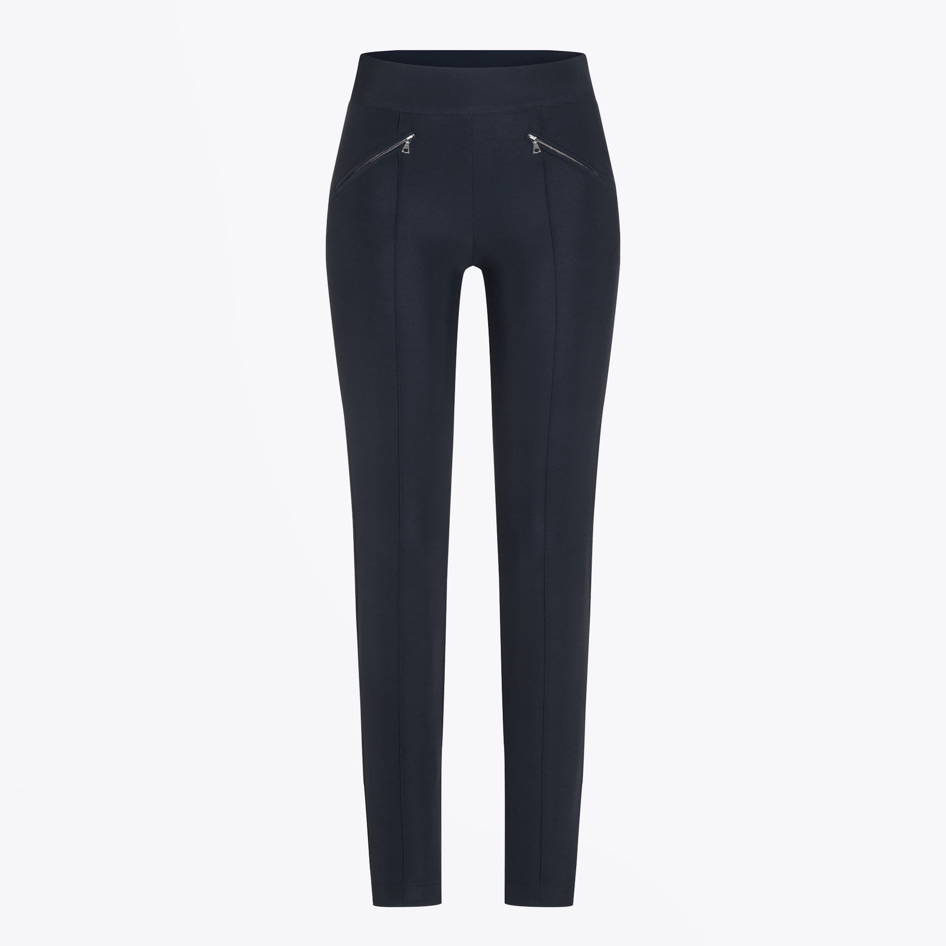 A leading specialist in lady’s premium pants and denim, Cambio delivers an innovative and feminine look with exceptional quality of materials and a reliable fit. With a luxurious touch and a stretchy breathable fabric, these trousers are definitive sophistication and comfort.  The Rainbow pant in navy offers two zip pockets on the front and elastic waistband. These chic trousers will become your staple clothing piece that can be worn all year round.