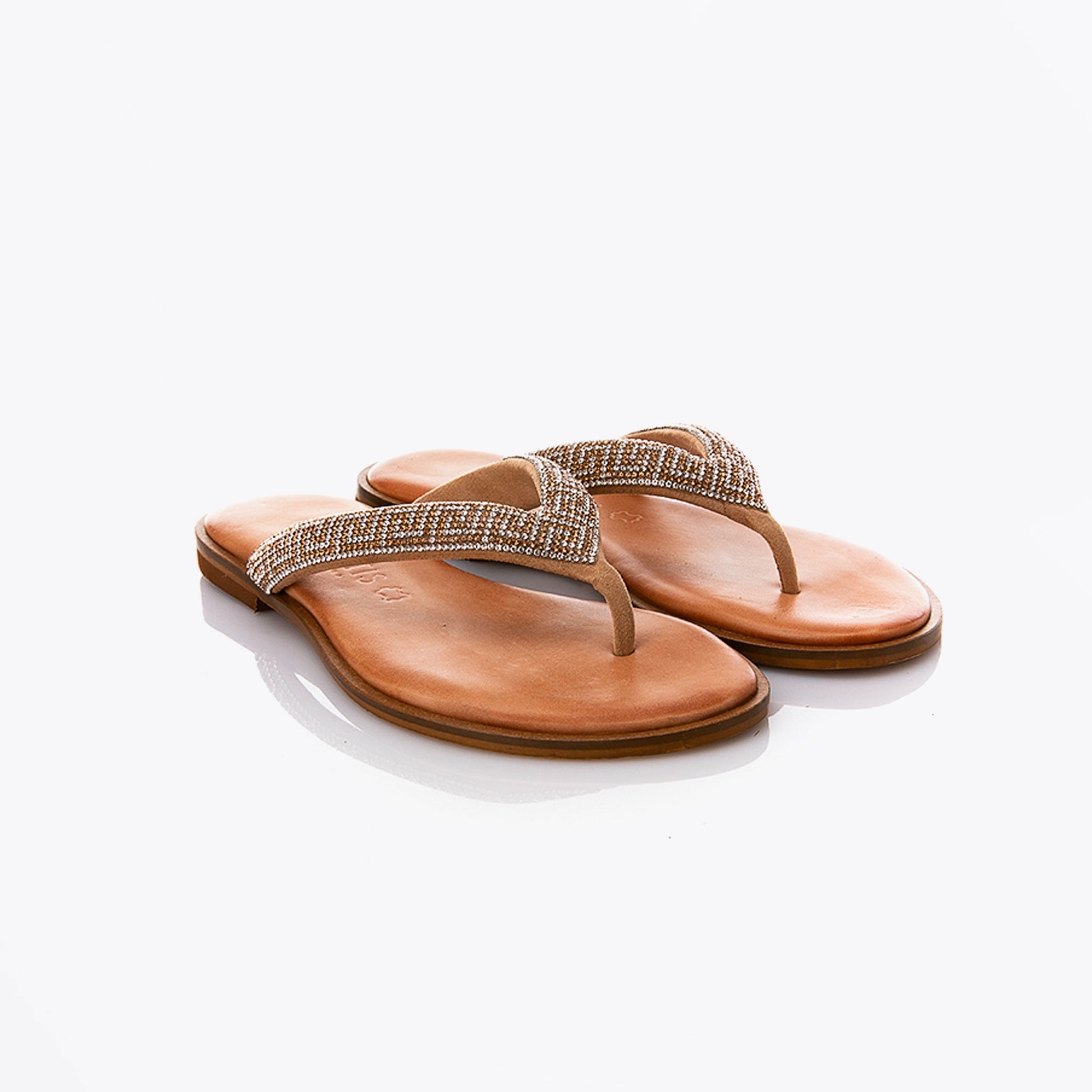 Caryatis Greek Sandals are handmade locally by skilled craftsmen using traditional techniques that have existed for centuries. A raw, yet feminine aesthetic distinguishes this new sandal brand. The chemical free, natural tan leather ages beautifully with time and wear.  Crafted in Greece from supple leather these sandals feature a feminine elevated diamante thong straps. The versatile natural hue and simple silhouette mean they'll go with everything from bohemian dresses to cropped jeans.