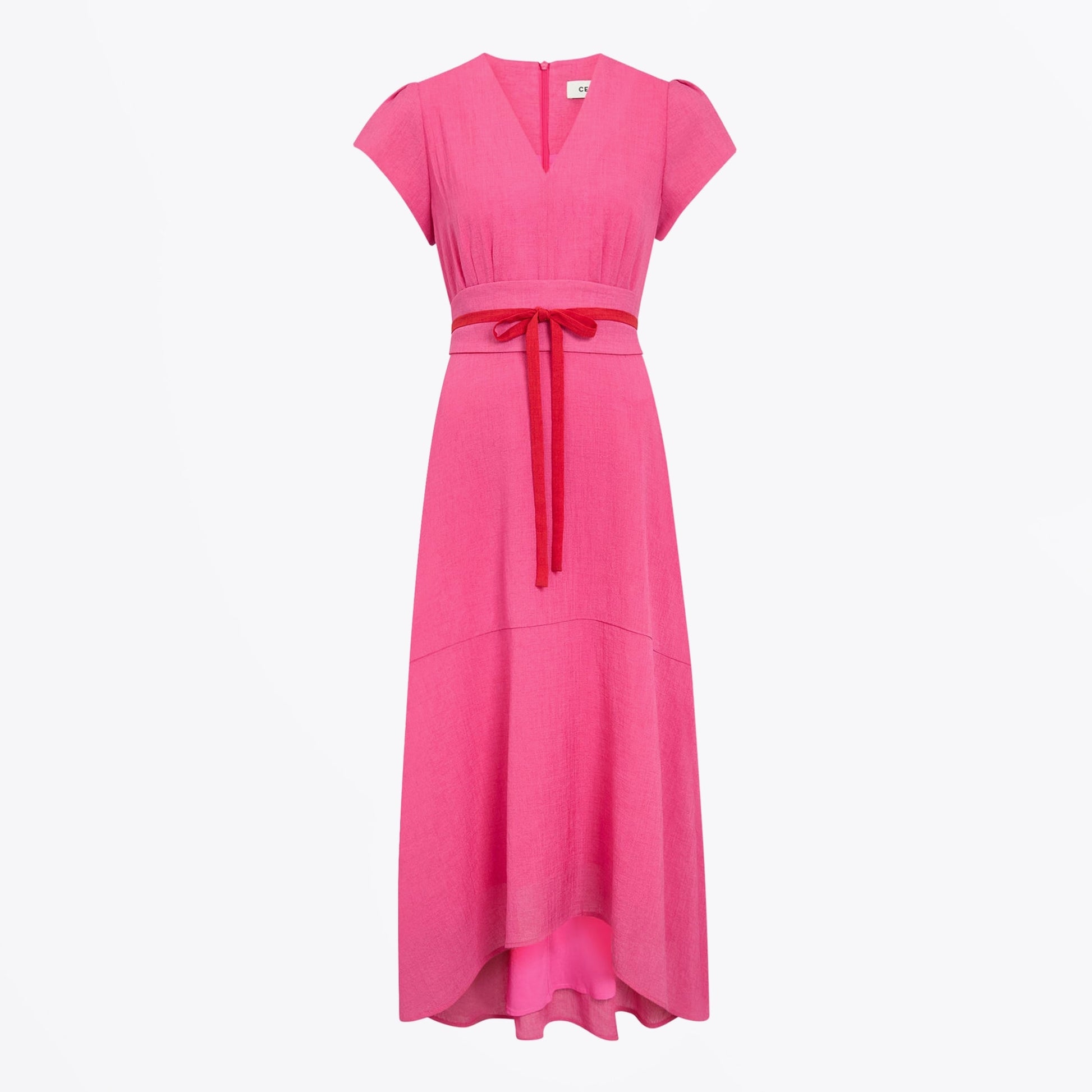Modern design steeped in elegance and femininity, Cefinn’s contemporary style is all about creating unique pieces that are versatile and eternal. Founded by Samantha Cameron in 2017, this young brand has been designing clothing that allows women to feel effortlessly fashionable Add some effortless elegance to your dresses with this Cefinn Aria dress. This dress is crafted with an elegant lightweight hot pink fabric and features removable contrast belt, v neck, short sleeves and a flattering waistline. Style this dress with a pair of heels.