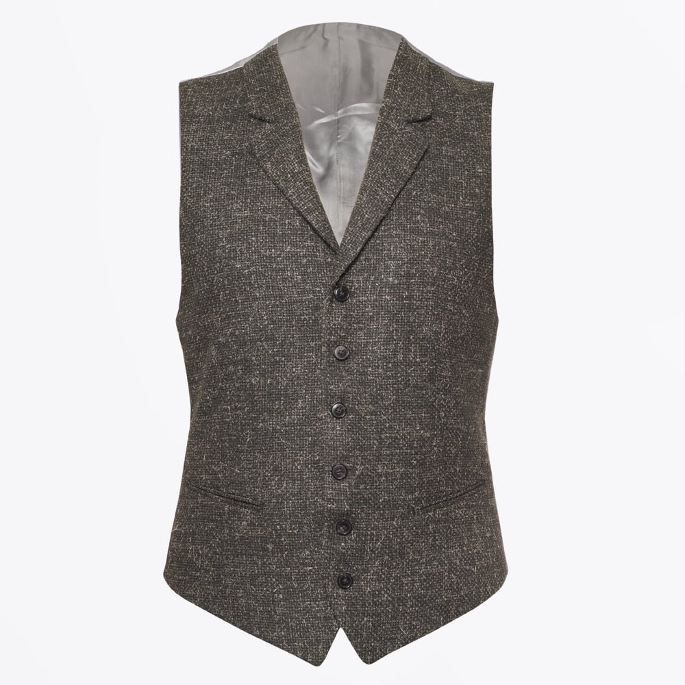 The Circle of Gentlemen fashion label designs distinctive tailored menswear that is effortlessly sophisticated. Their suits are the epitome of classic styling with a contemporary edge. This Axel Textured Waistcoat in army green is made from a wooly m��lange fabric with a silky grey back. This piece is timeless and could be paired with the matching jacket.