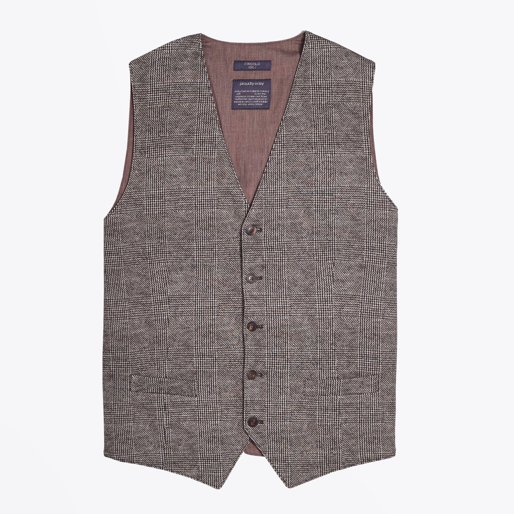 Creativity, experience and innovation are the key ingredients of the Circolo 1901 label. Their aim is to master the art of modern yet classic dressing.This classic brown waistcoat is traditionally tailored with a check pattern on the front and a plain lining. With waist pockets and detailed buttons, this is a timeless piece.  Pair with matching blazer and smart trousers for a perfect look for a wedding.