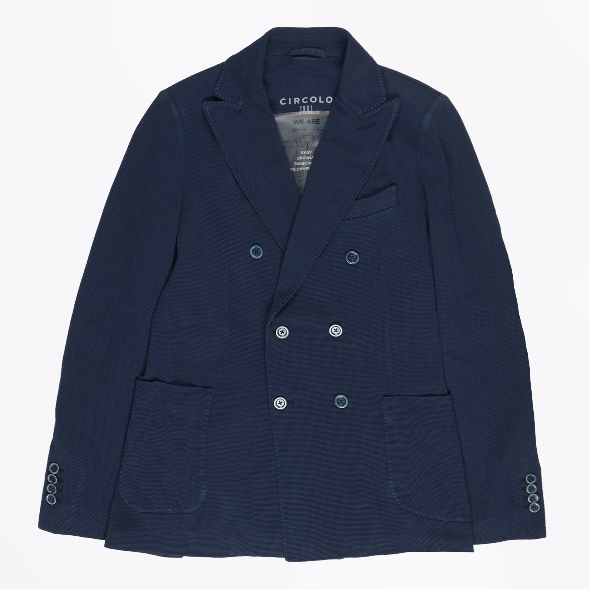 Creativity, experience and innovation are the key ingredients of the Circolo 1901 label. Their aim is to master the art of modern yet classic dressing. Give your casual blazers a touch of designer styling with this Circolo option. Crafted in a textured blue cotton blend, this jacket features a double-breasted design with chunky buttons with side patch pockets, an interior pocket, and a classic lapel. Style this jacket with a white shirt for a more formal occasion, or with a plain tee for a more casual outfit.