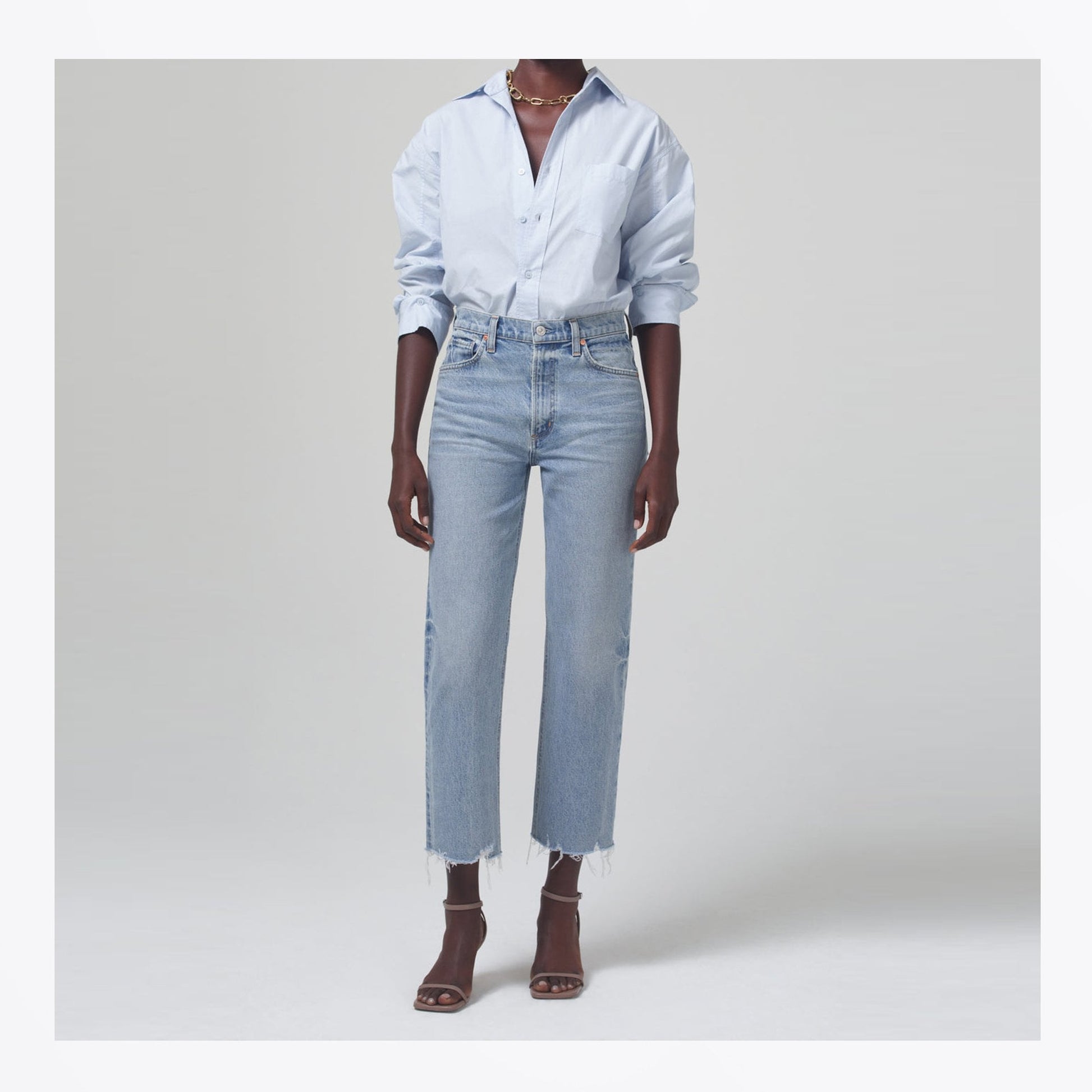 Introducing Citizens of Humanity to Mr & Mrs Stitch this season. Citizens of Humanity is a Los Angeles-based premium denim label that has captivated the world with a devoted commitment to producing the highest quality denim, without compromise. With an elevated style that exudes femininity, naturalness, and a sophisticated ease, this sets the foundation for the brand that continuously executes each design with intention in every detail. Since 2003, they have designed and manufactured in company-owned facilities as well as with select production partners to ensure that our product is unparalleled in look, fit, and feel. These clean medium vintage indigo leg-lengthening stovepipe silhouette are designed to sit high on the waist with ease through the thigh, and a cropped leg. A versatile jean, this laid-back yet flattering fit pairs well with chunky-knit sweaters, statement blouses, or oversize button-downs.