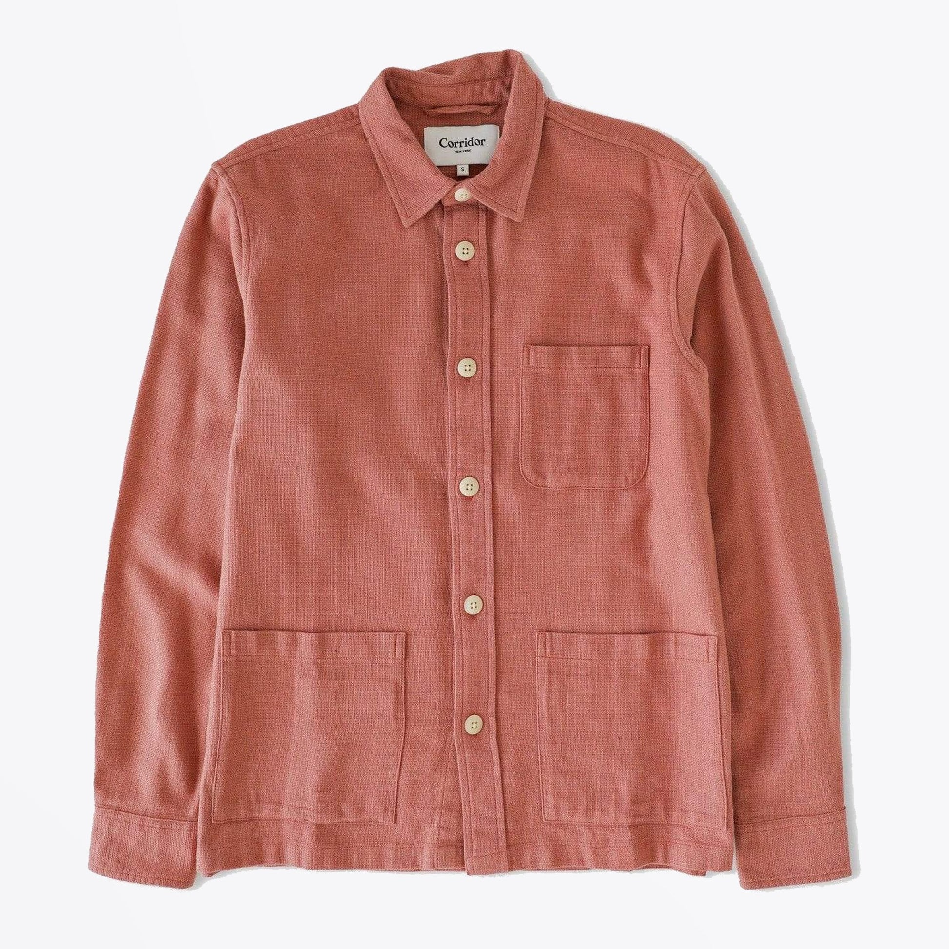 Brand new label to Mr & Mrs Stitch, the New York-based label, Corridor is an independent brand focused on contemporary American clothing, natural fibers, and responsible design and tailoring. The textiles and garments are designed in-house with selectively-partnered, ethically, and environmentally sustainable workshops specialised in the best quality production. This overshirt in dusty rose has become the modern sports coat and Corridor have evolved their textiles that function as both a solid and a pattern; and the open weave effect does that wonderfully.The overshirt is crafted in a linen/cotton blend and is finished with detailing such as two front patch pockets, chest pocket, button-down front with corozo nut buttons, collar and buttoned cuffs. Easy to wear and to assimilate into your casual or smart wardrobe with a pair of our stylish trousers.