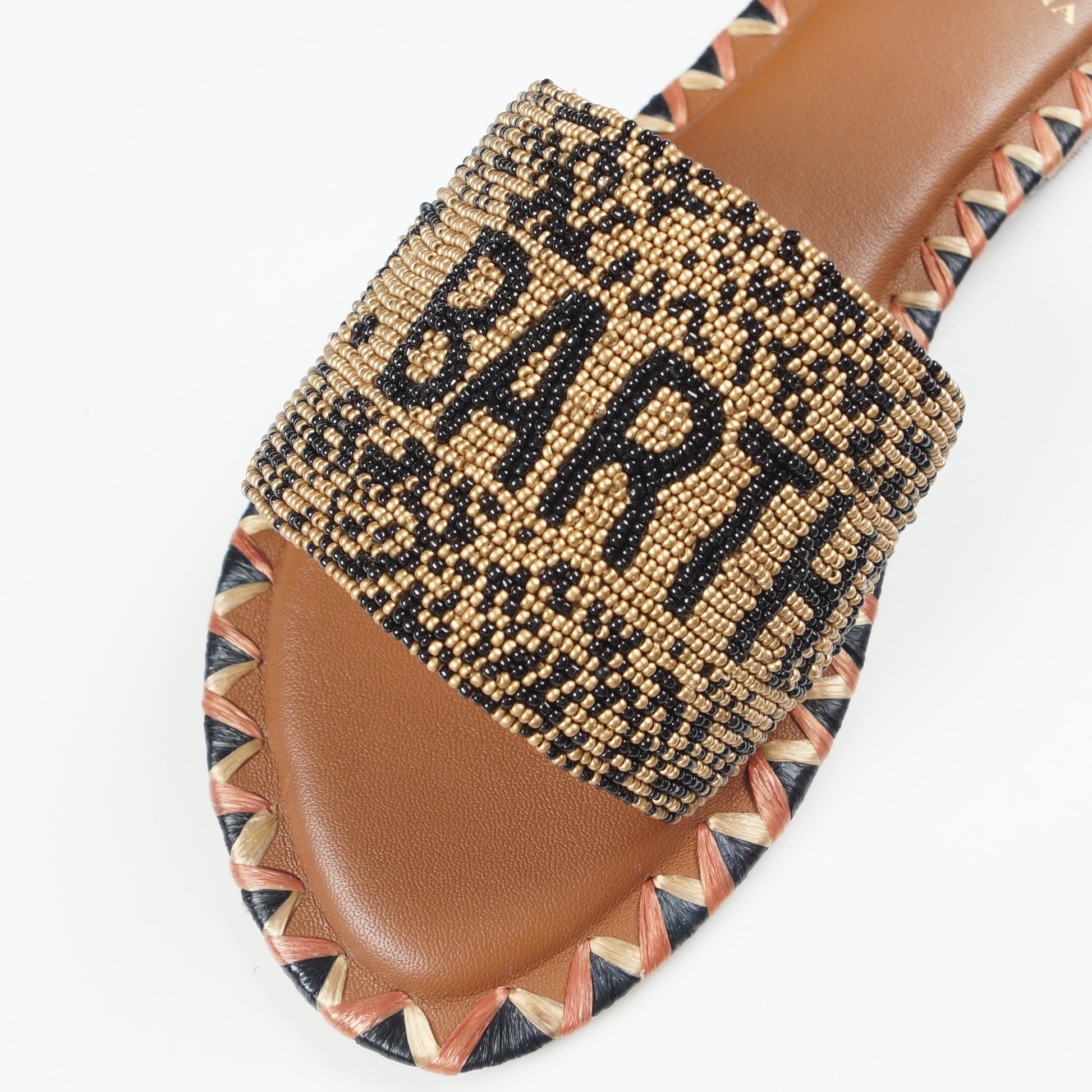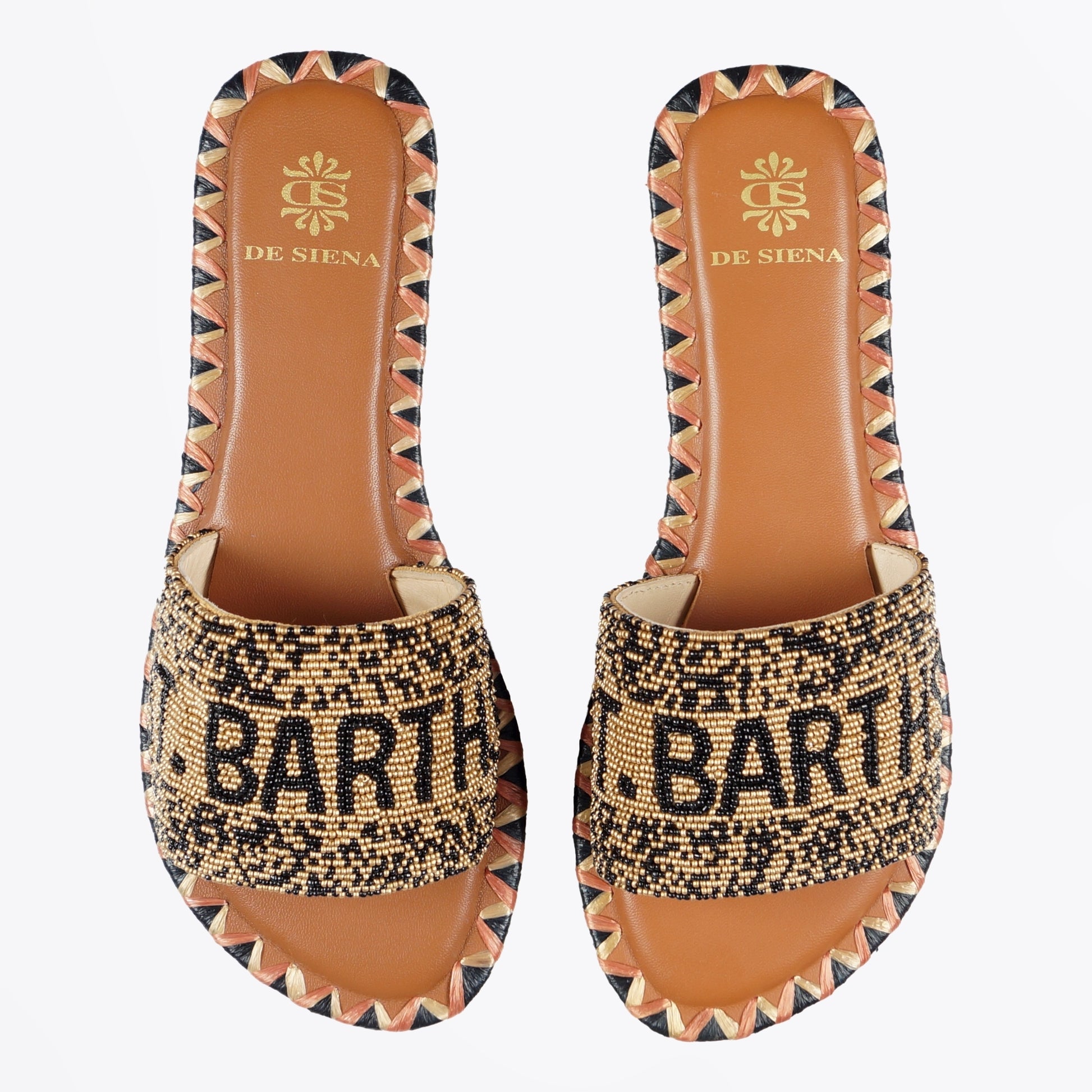 - St. Barths Hand Beaded Sliders - Gold/Black