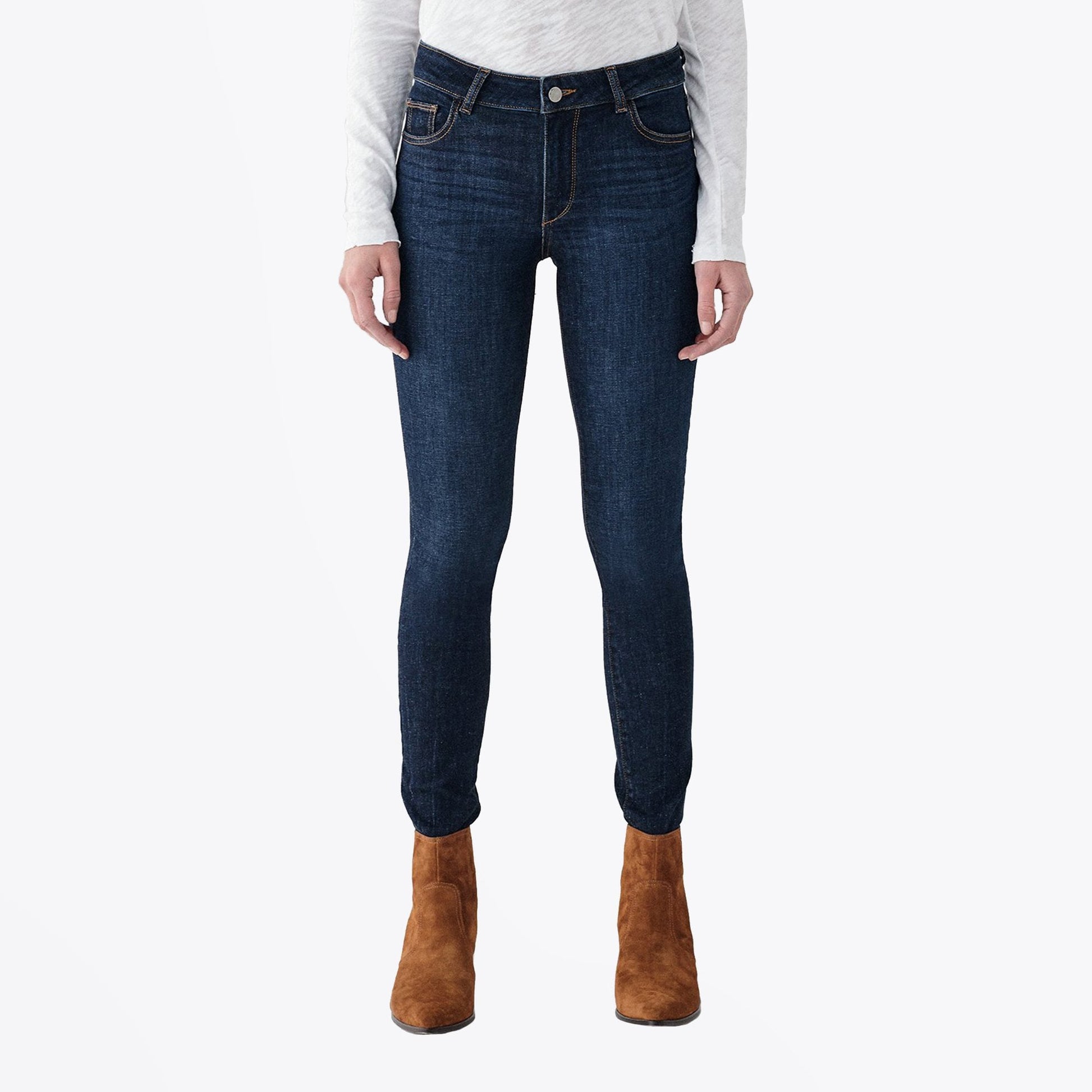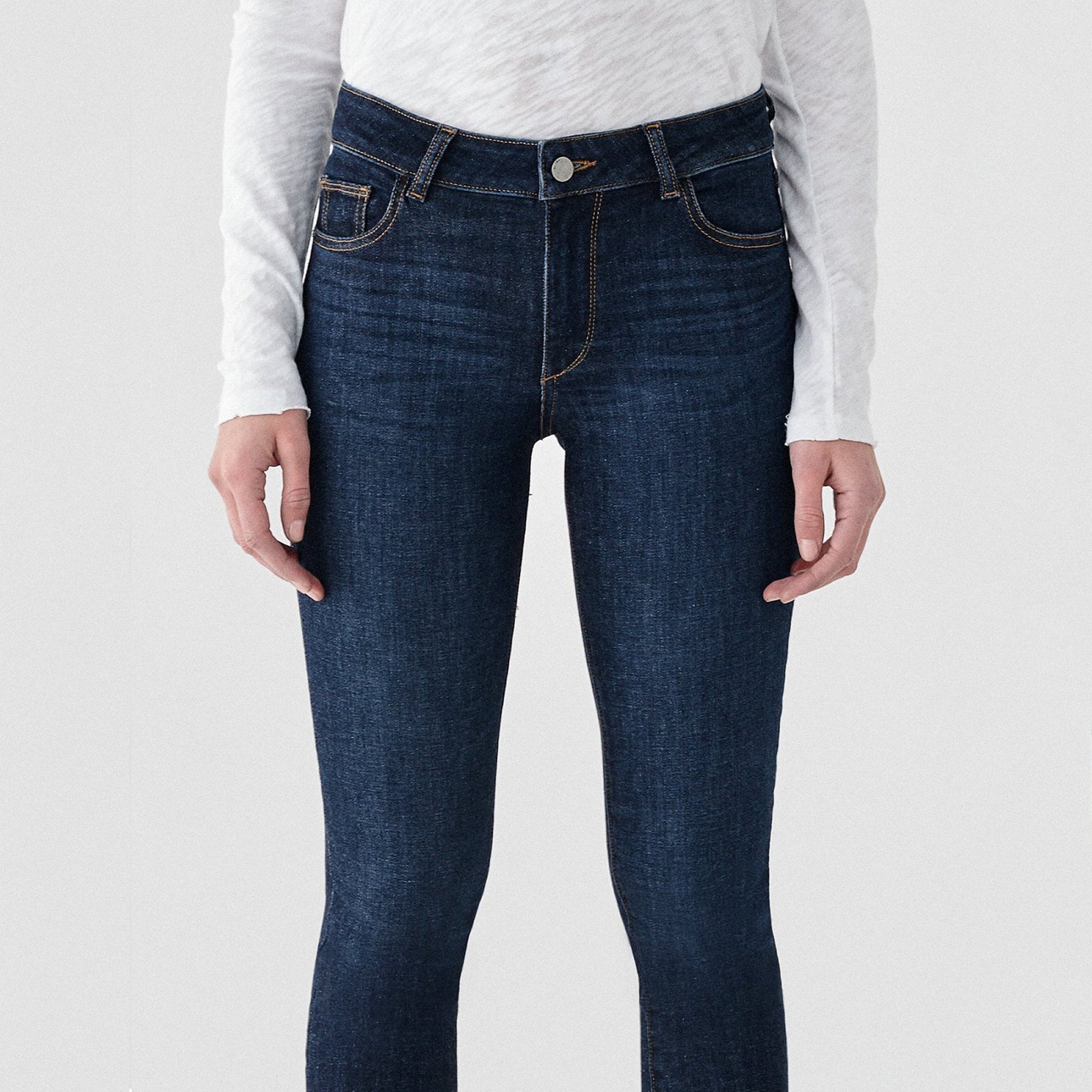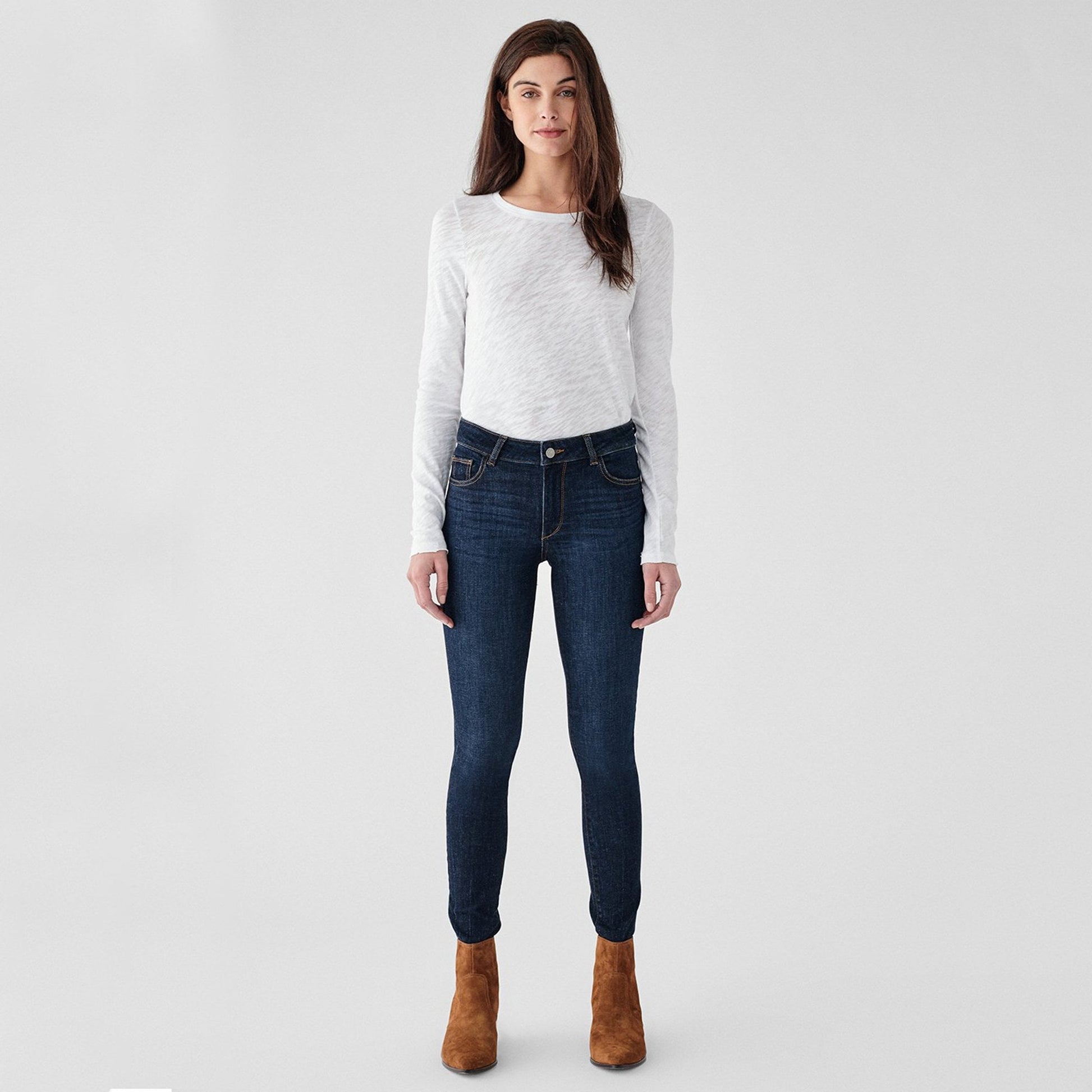 DL 1961 has taken denim to the next level by combining lycra, modal and tencel fibres to create the ultimate fit, shape and feel. Here’s the skinny jean that you’ve been waiting for. Designed to contour your curves and sculpt your assets, the DL 1961 Florence Mid-Rise Skinny denim jeans flatters all figures from hip to hem with a figure-flattering contoured waistband. Features include a dark indigo wash and tonal hardware. The Florence jean will become your wardrobe essential for the new season. Note that the Florence Jean runs true to size, however if you are between sizes order a size up.