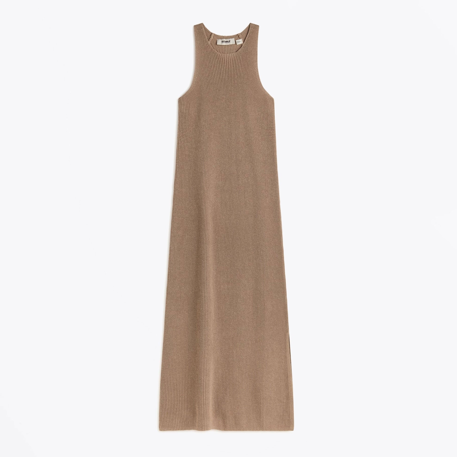 Introducing Ecoalf for the first summer with Mr & Mrs Stitch. Ecoalf was created in 2009 with one goal in mind, to create a sustainable fashion brand to stop using natural resources in a careless way to ensure those of the next generation. Add this piece from Ecoalf to add luxury, comfort and sustainability to your wardrobe. This Citrine dress is a slip on summer knitted dress, sleeveless with a slight racer back that adapts perfectly to your body and made in Vegan friendly material. Wear this dress with a pair of Caryatis sandals.