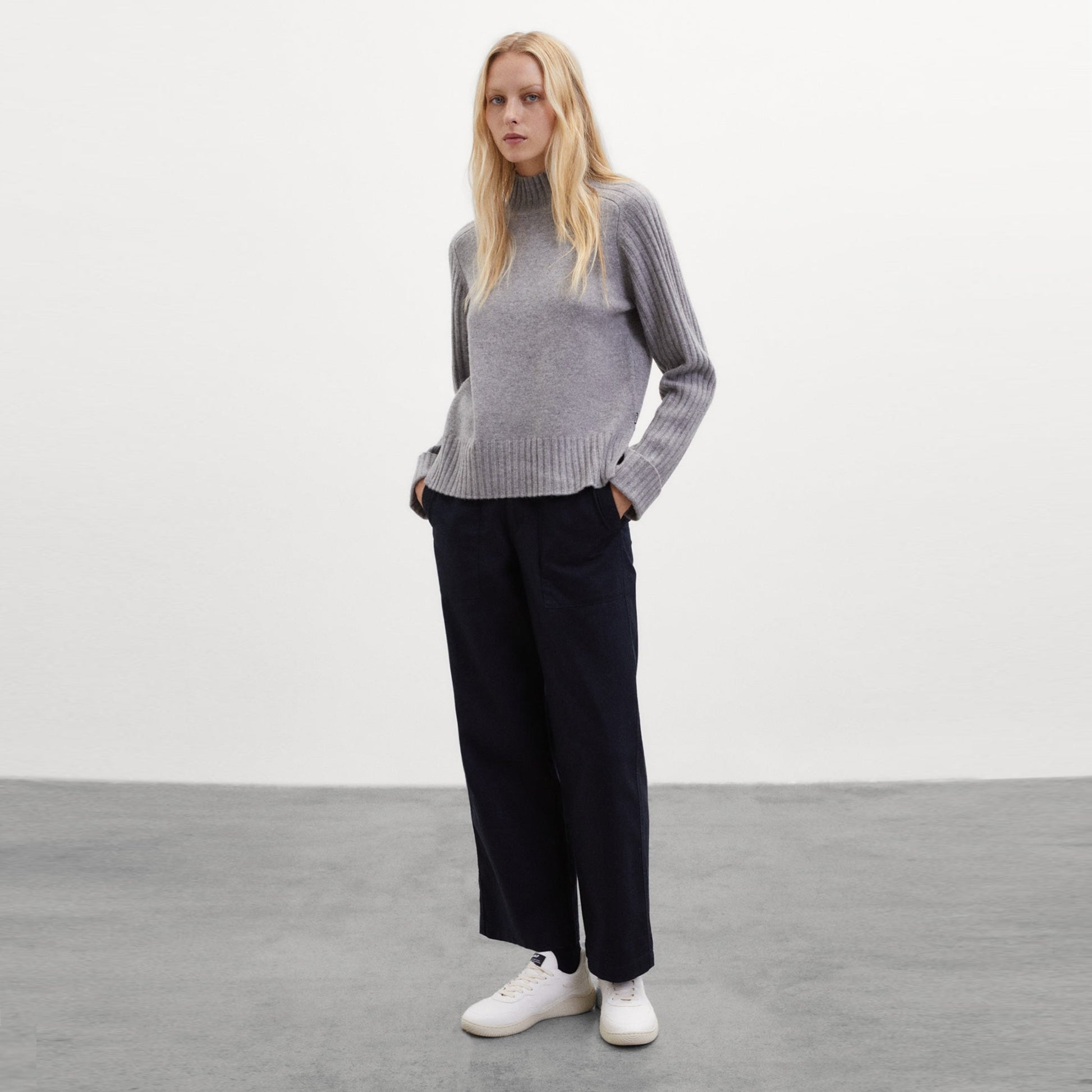 Introducing a new brand this season Ecoalf. Ecoalf was created in 2009 with one goal in mind, to create a sustainable fashion brand to stop using natural resources in a careless way to ensure those of the next generation. Add this piece from Ecoalf top add luxury and sustainability to your wardrobe. This knitwear piece is made from recycled wool in a grey shade. This knitwear piece features raglan sleeves, turn up cuffs and a detailed knit design through on the arms hem and cuffs. Wear this jumper with a pair of designer trousers and a pair of designer trainers.