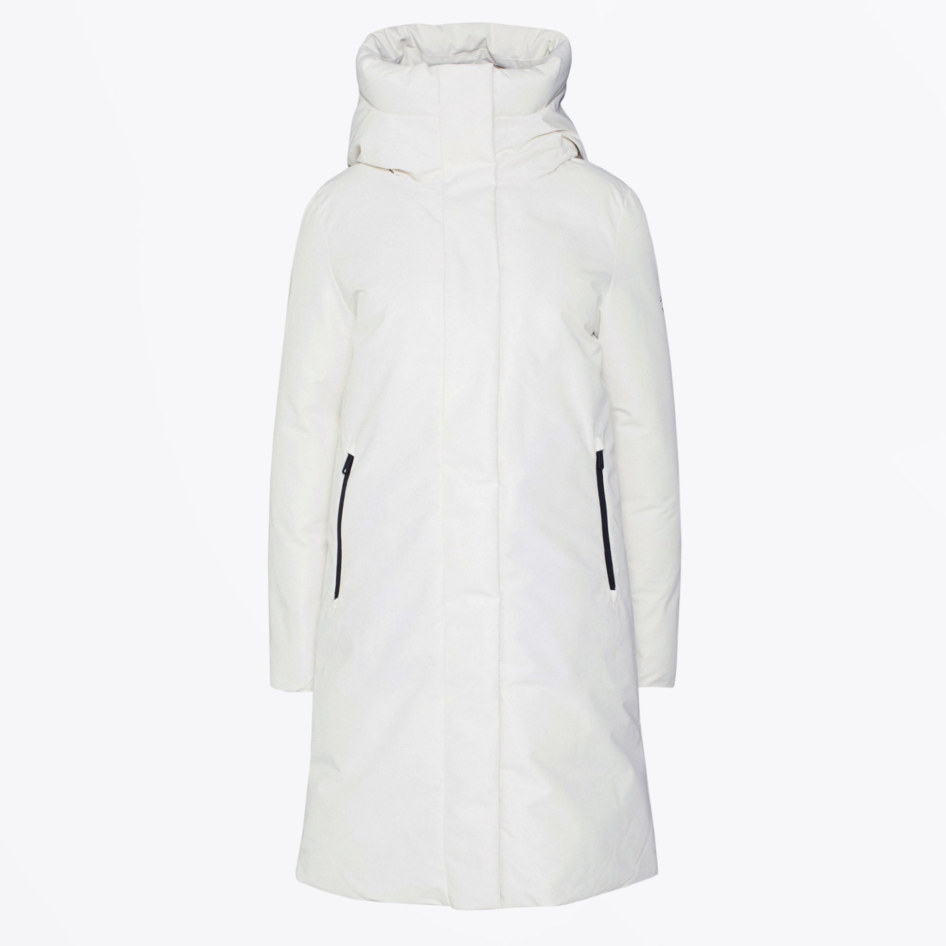 Introducing a new brand this season Ecoalf. Ecoalf was created in 2009 with one goal in mind, to create a sustainable fashion brand to stop using natural resources in a careless way to ensure those of the next generation. The Makalu coat is made using post-consumer garments and our Ocean Yarn, made with bottles recovered from the ocean thanks to the Ecoalf Foundation. Add this piece from Ecoalf top add luxury and sustainability to your wardrobe. This cost is made from recycled polyester in a creamy white shade. This coat features a bidirectional zip fastening, zipped pockets, internal pockets, elasticated cuffs and includes water resistant material.  Wear this coat with a pair of designer trousers and a pair of designer trainers.