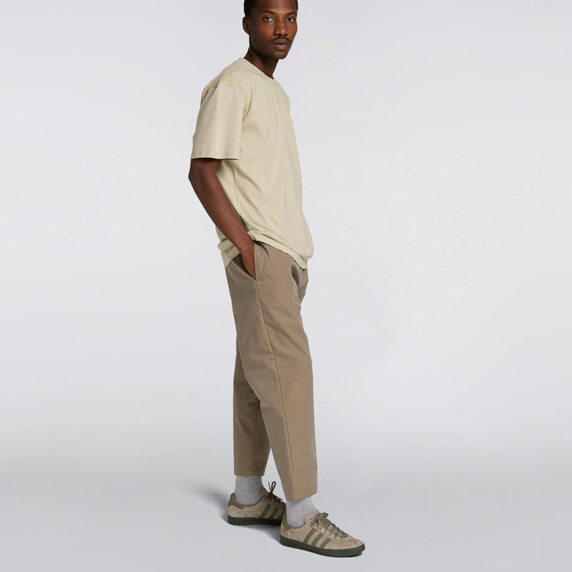 EDWIN is a progressive denim brand that blends their Japanese background, craftsmanship and expertise with a European contemporary flavour, vision and attitude. A contemporary take on a wardrobe staple, these utilitarian pants from Edwin are a great way to mix it up with your trouser options. These pants are crafted in a loose taper, with a cropped hem, and feature a D-ring attachment to the front belt loop, with side pockets, an elasticated waist, concealed back pockets with snap-button fastenings, and a branded patch appliqued on the back. Wear these trousers with a pair of chunky trainers, a plain tee, and a Wax London overshirt.
