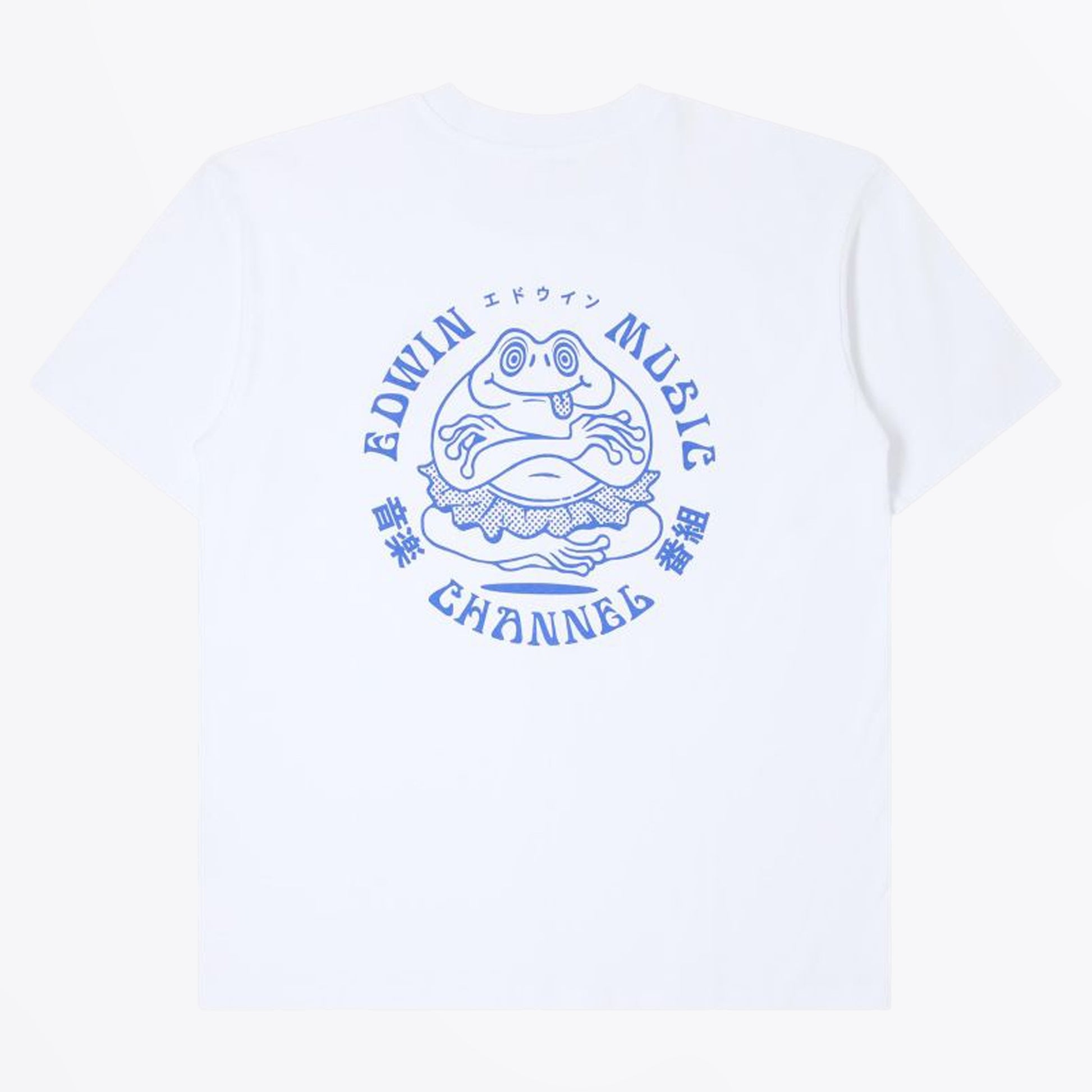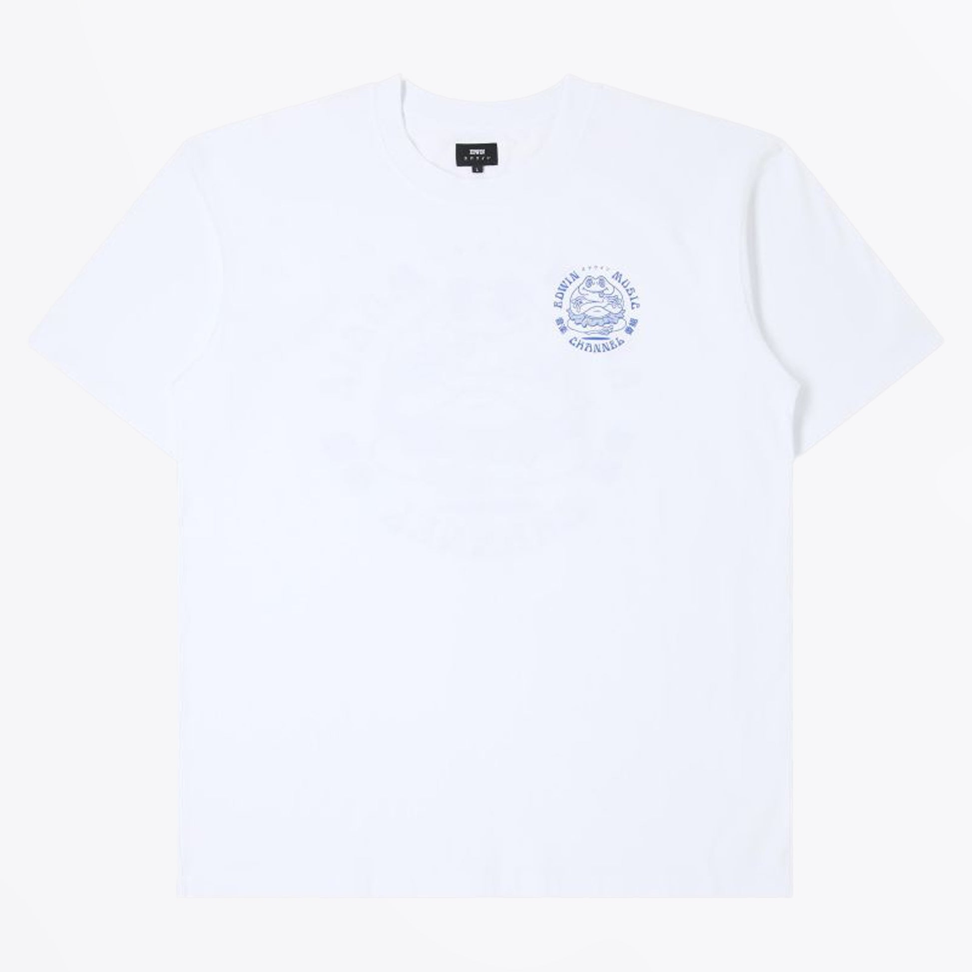 Edwin is a progressive denim brand that blends their Japanese background, craftsmanship and expertise with a European contemporary flavour, vision, and attitude. Sure to add some Japanese influence on your wardrobe with this t-shirt. This white t-shirt a “music channel” print design on the chest and back, crew neckline and short sleeves Wear this Universal Works trousers and Hoff trainers.