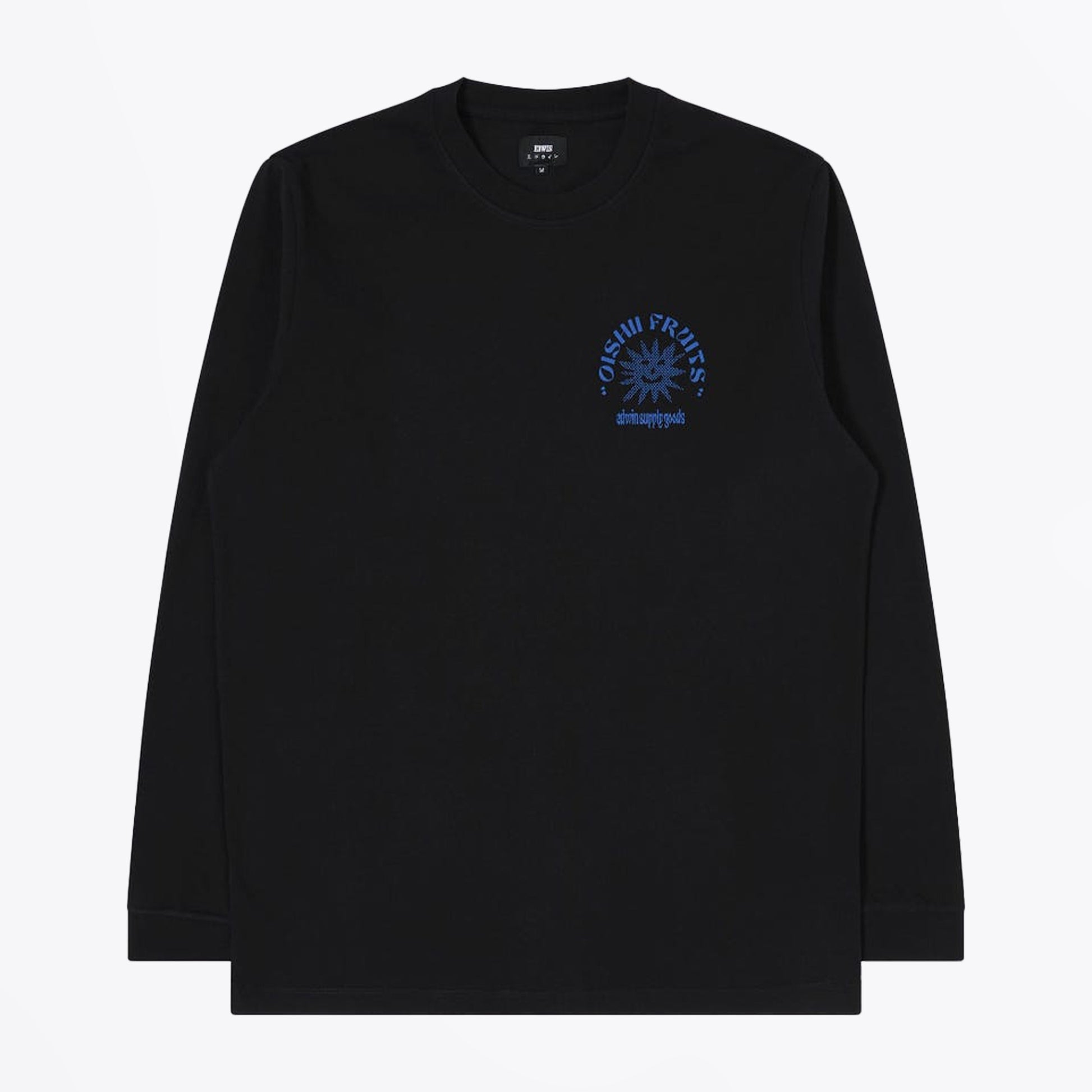 EDWIN is a progressive denim brand that blends their Japanese background, craftsmanship and expertise with a European contemporary flavour, vision, and attitude. Sure to add some Japanese influence on your wardrobe with this tee featuring an “Ringo Oishii “design on the chest and back. This tee also has long sleeves, a ribbed crew neckline in a regular fit. Pair this top with some Universal Works trousers and your favourite pair of designer trainers.